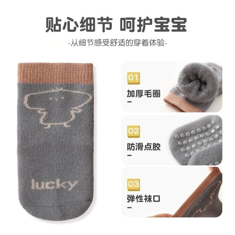 婴儿袜子宝宝秋冬款 新生婴儿加棉卡通中筒防滑地板袜比纯棉A类