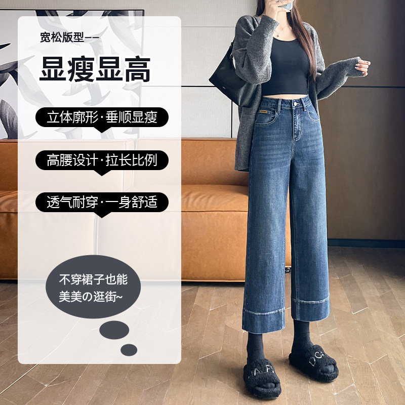 高腰直筒九分裤 薄款 子 女八分小个子2025年夏季 烟管杏色米白牛仔裤