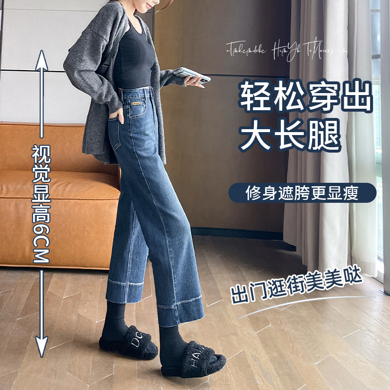 设计感高腰宽松显瘦微喇叭直筒裤 手绘涂鸦小个子阔腿牛仔裤 女春季
