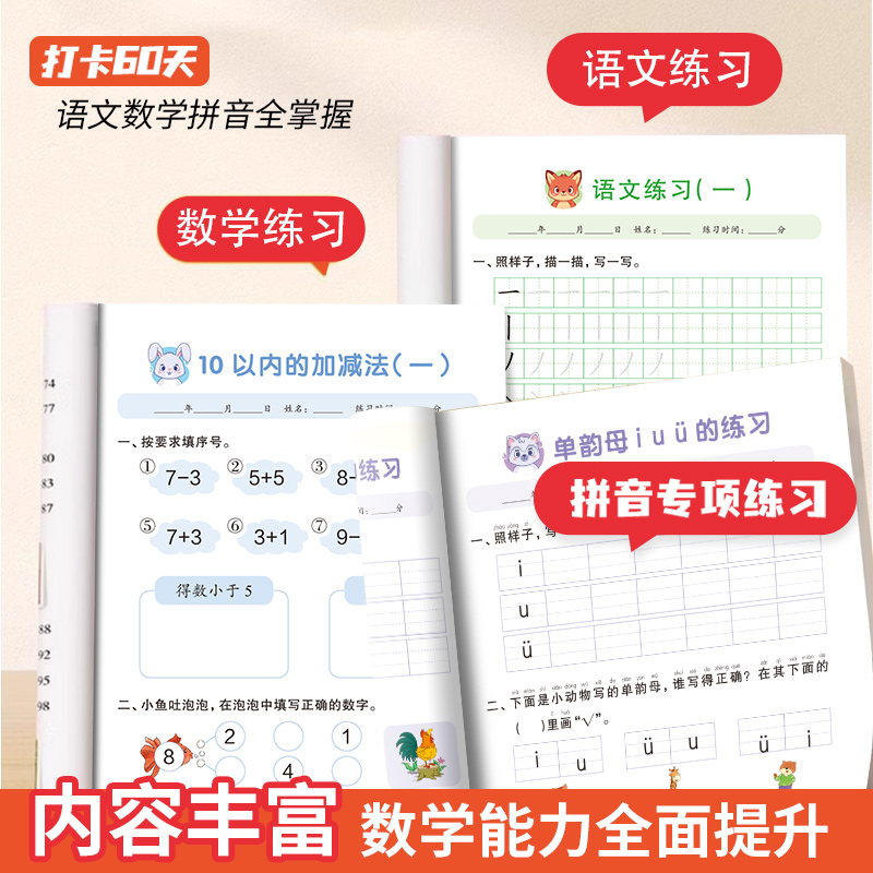 2025新幼升小衔接练习册全套人教版 幼小衔接60天领跑一年级入学准备拼音数学幼儿园启蒙教材大班学前班每日一练暑假衔接一本通识字