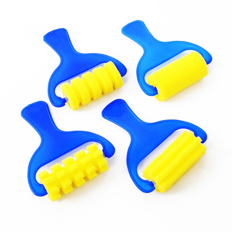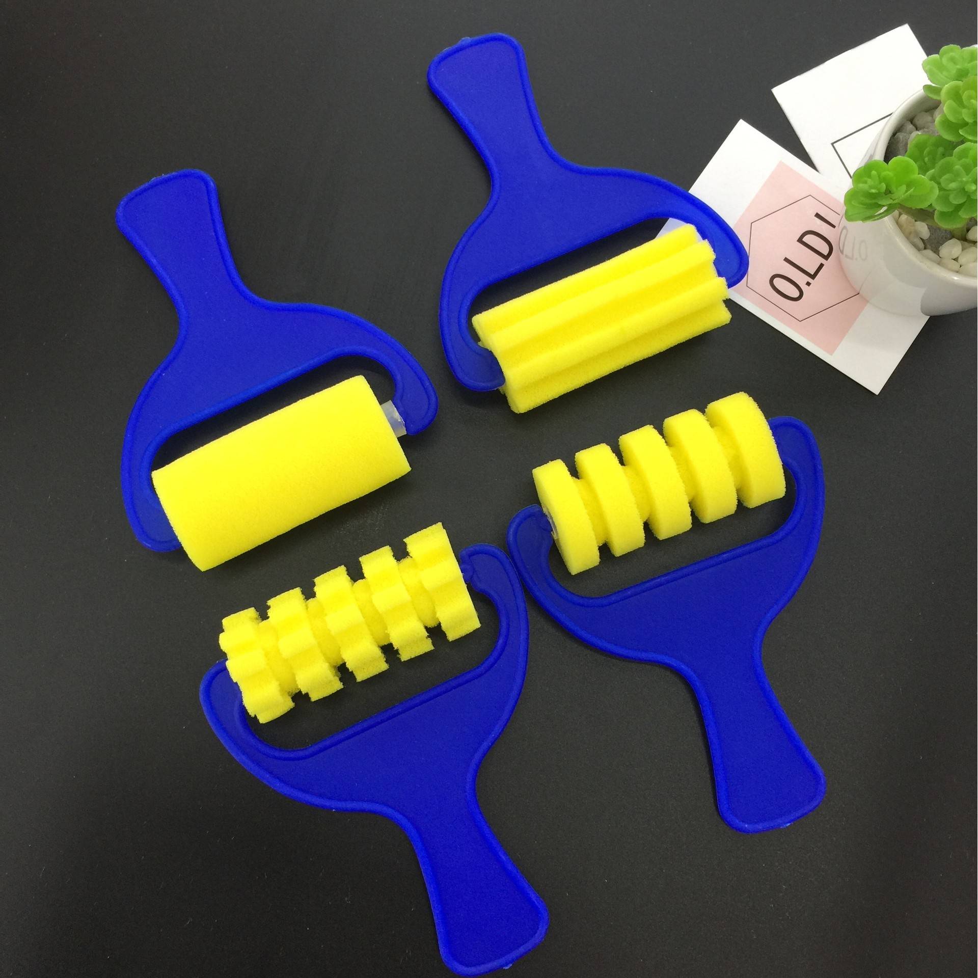 4件套海绵滚轮滚筒幼儿园益智绘画美术涂鸦颜料画早教工具海绵刷