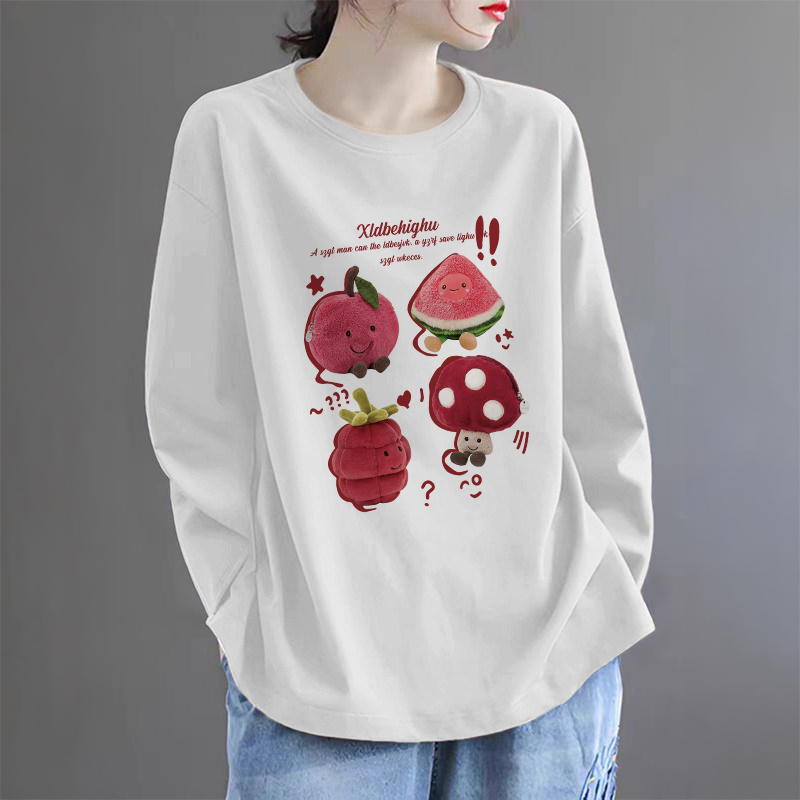 胖mm长袖 圆领宽松大码 t恤女早秋上衣女 女2025新款 白色内搭打底衫