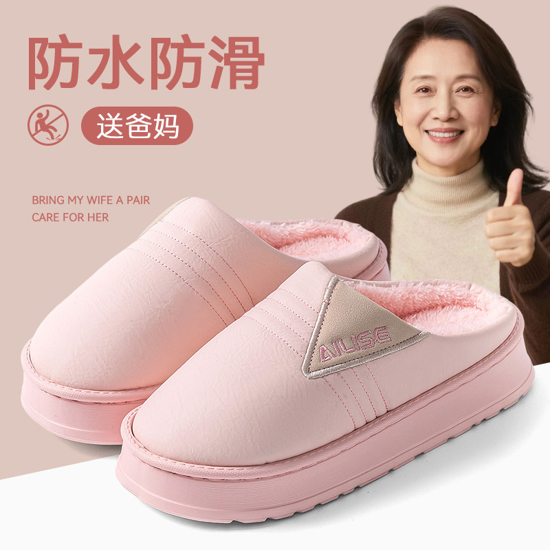 女款 加绒老人棉拖鞋 室内保暖棉鞋 2025新款 冬厚底 男防滑包跟秋冬季