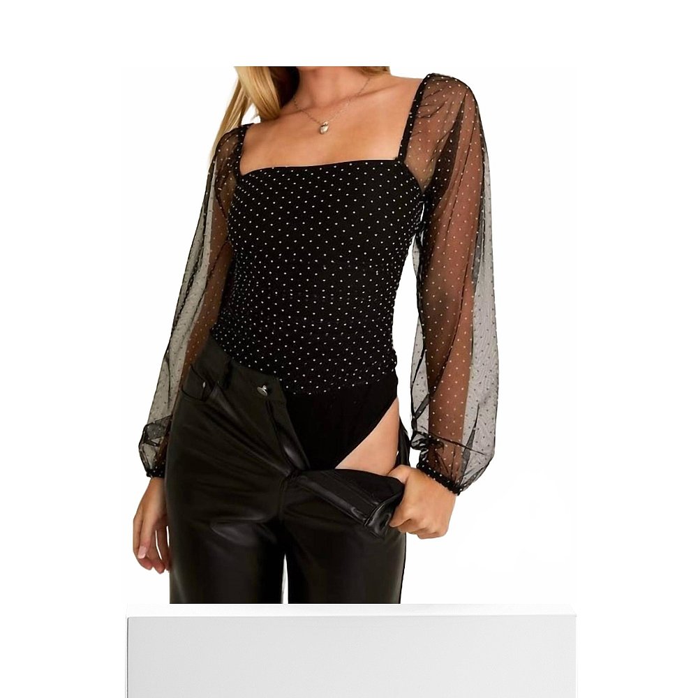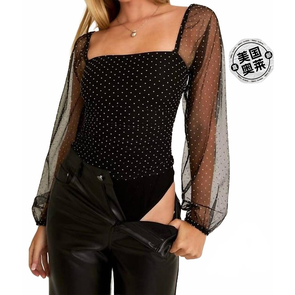 Dot Long Black lisDina white Polka Bodysuit 自营le Sleeve