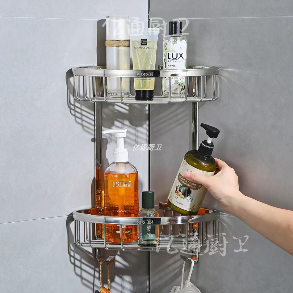免打孔SUS304不锈钢三角架长方形置物架酒店浴室三角篮卫生间角架