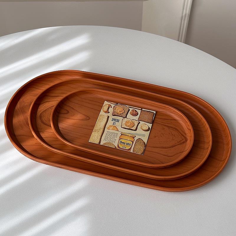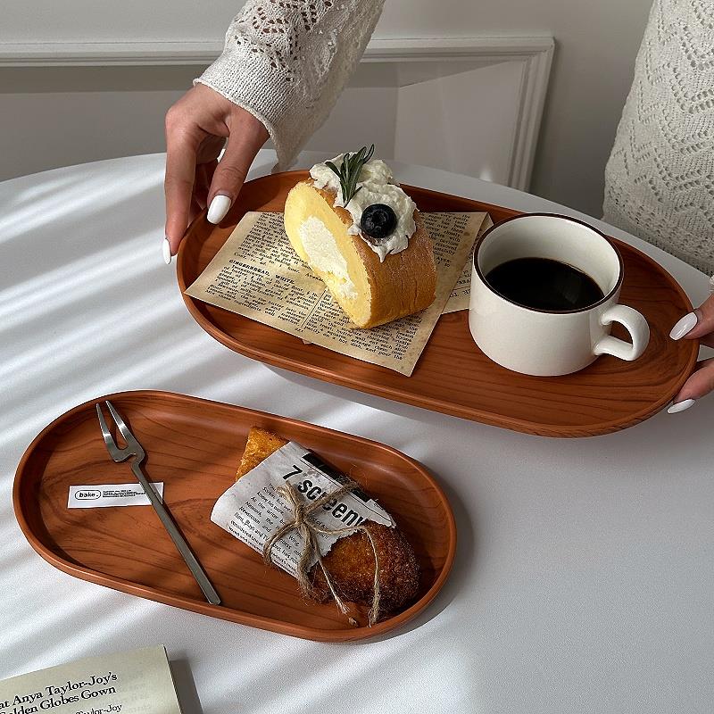 摩登主妇仿木纹托盘长方形茶托盘高级感家用客厅茶杯水杯早餐盘子