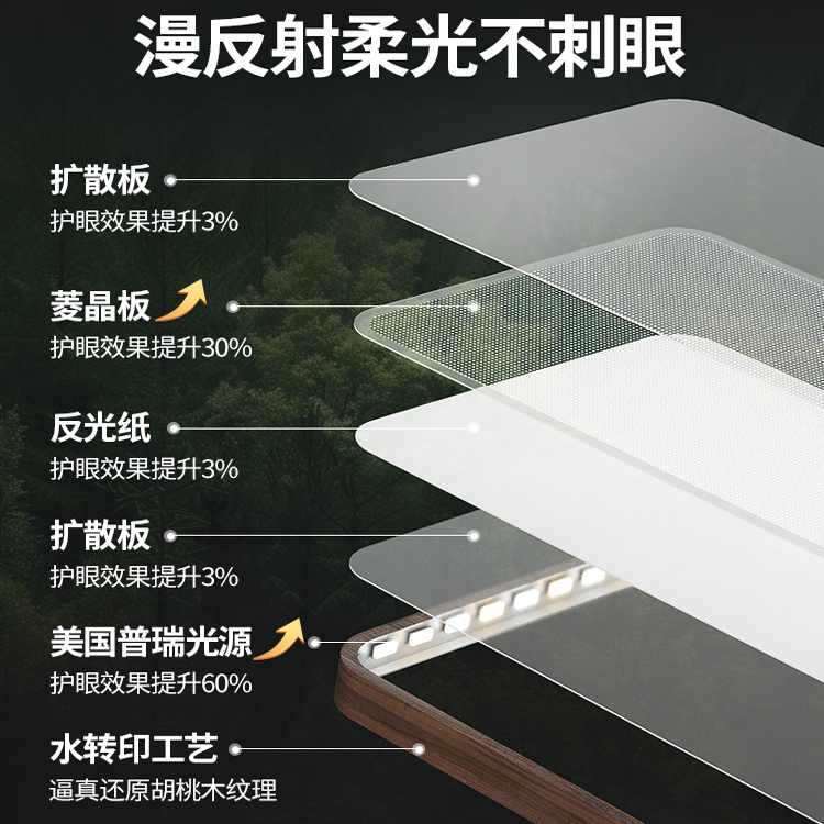 绿源客厅灯超薄中古风胡桃木色普瑞全光谱护眼2025新款 吸顶灯18