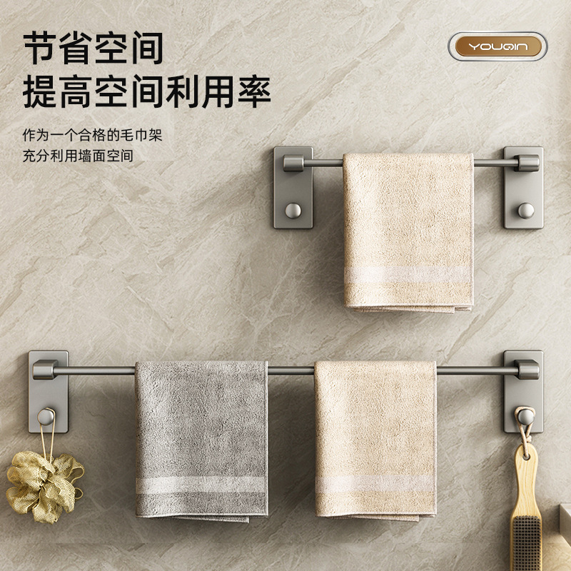 卫生间免打孔毛巾架子壁挂浴室毛巾单杆厕所洗手间收纳挂架置物架