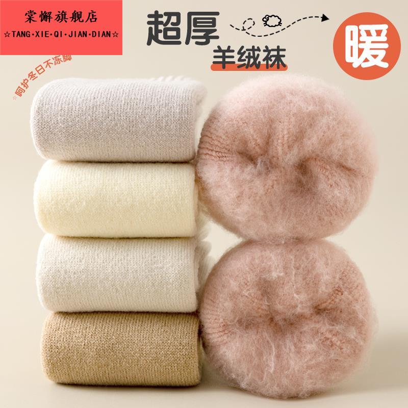 儿童袜子冬季 加绒加厚男童女童保暖中筒羊绒袜宝宝长筒睡眠袜秋冬
