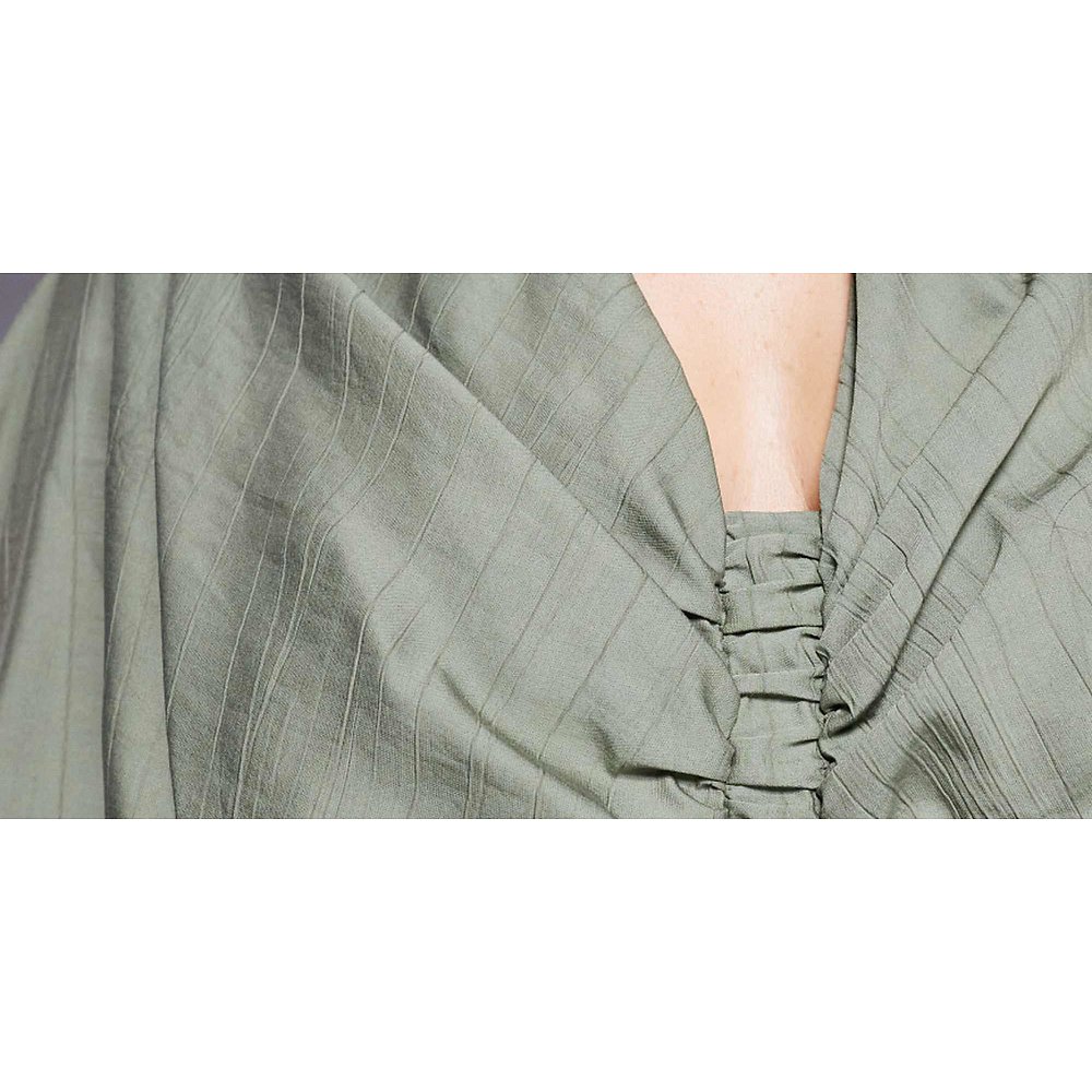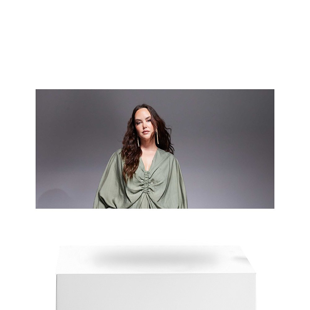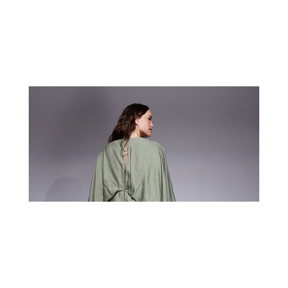 女士 ASOS Curve 设计深V松紧带宽袖 1h可退 柔软卡其色长款 潮奢