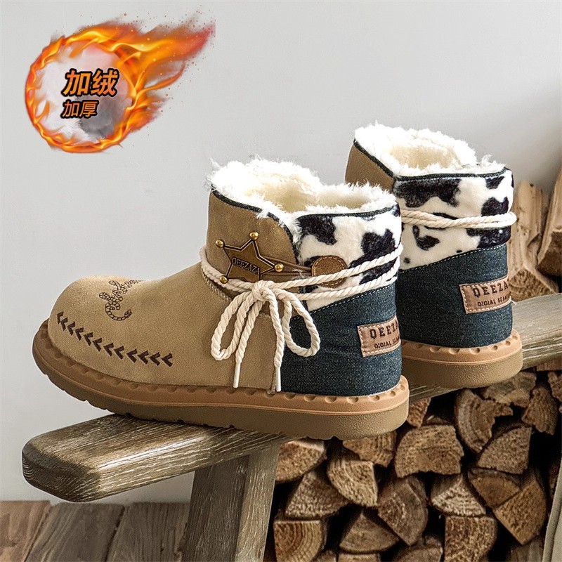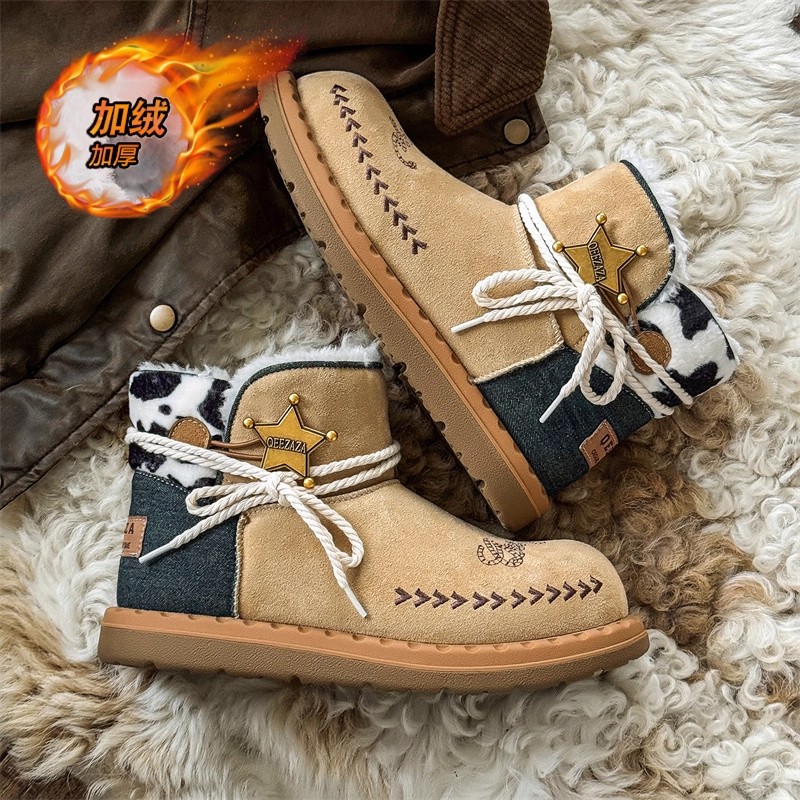 加绒保暖户外皮毛一体防寒东北棉鞋 情侣款 冬季 胡迪牛仔雪地靴男鞋