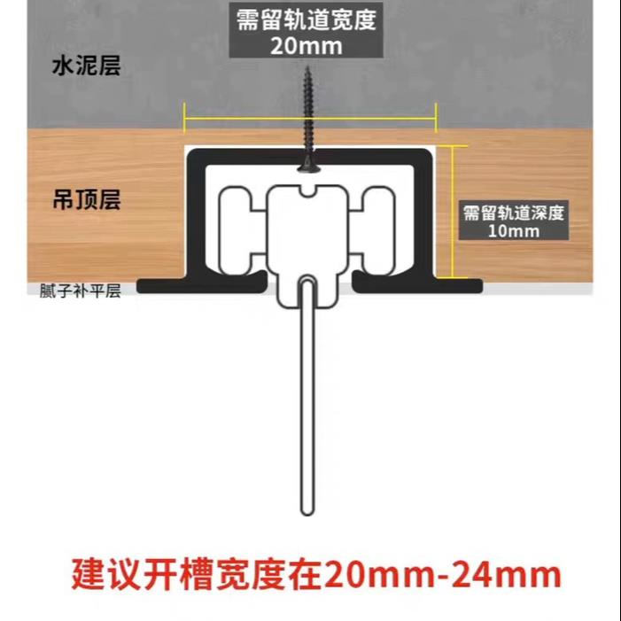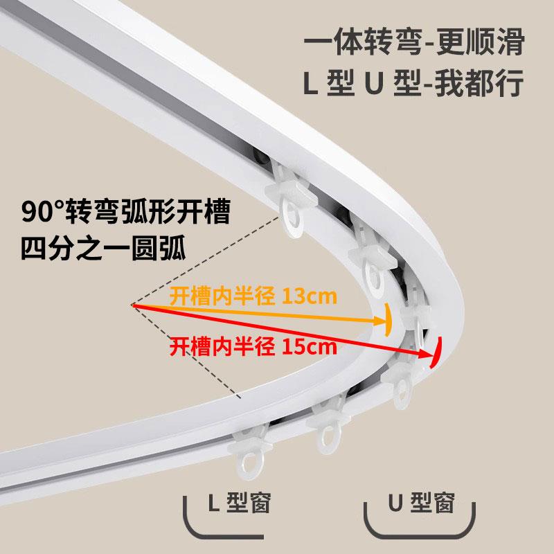 挂钩滑轨导轨弯轨 内嵌预埋暗藏式 超薄内开窗嵌入式 隐形轨道吸顶装