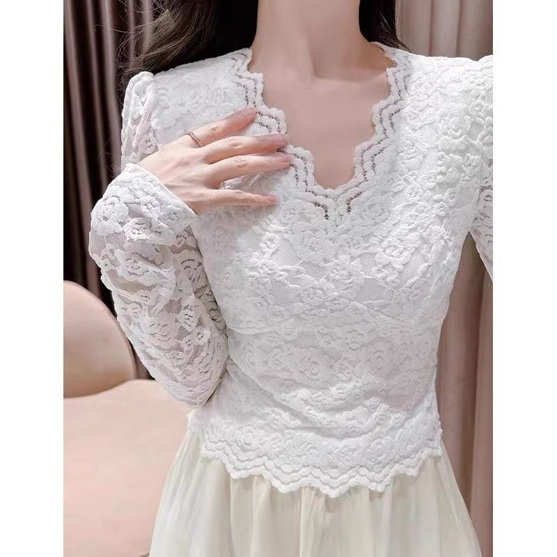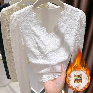 加绒内搭V领感短款 秋冬款 网纱上衣1013h 女2025新款 低领蕾丝打底衫