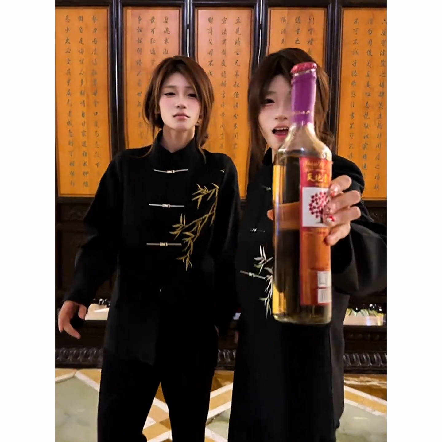 男套装 正装 订婚穿搭礼服高定戗驳领垫肩西服 山茶花刺绣西装 新中式