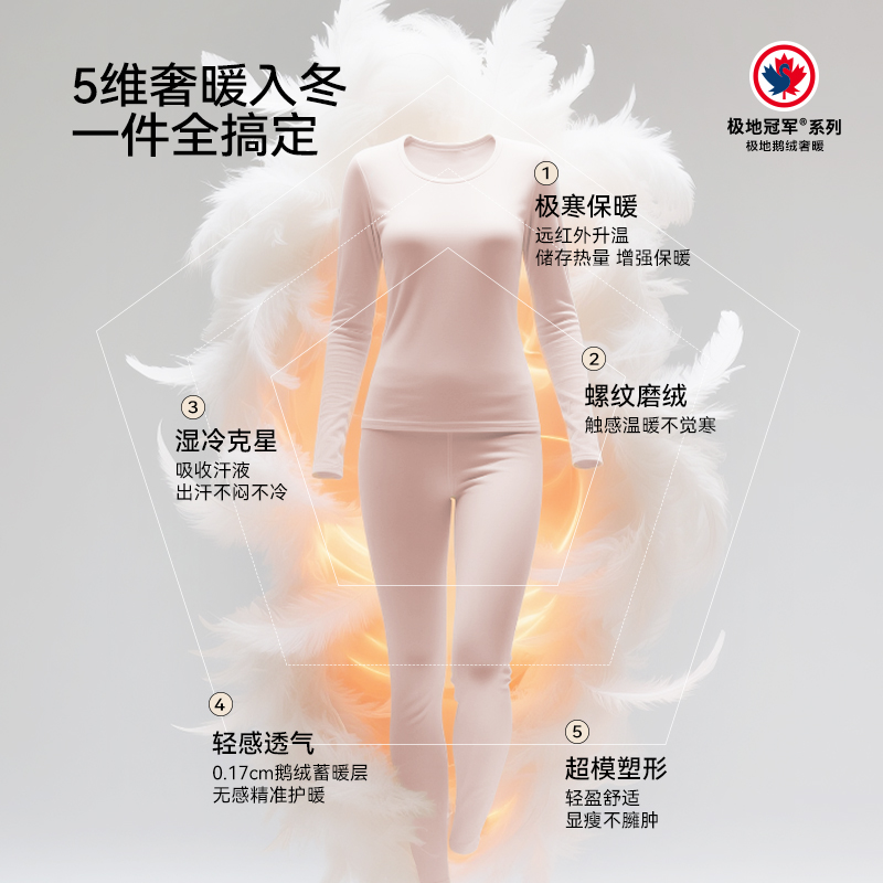 娜扎同款 内搭打底 加拿大鹅绒 情侣无痕修身 保暖内衣套装