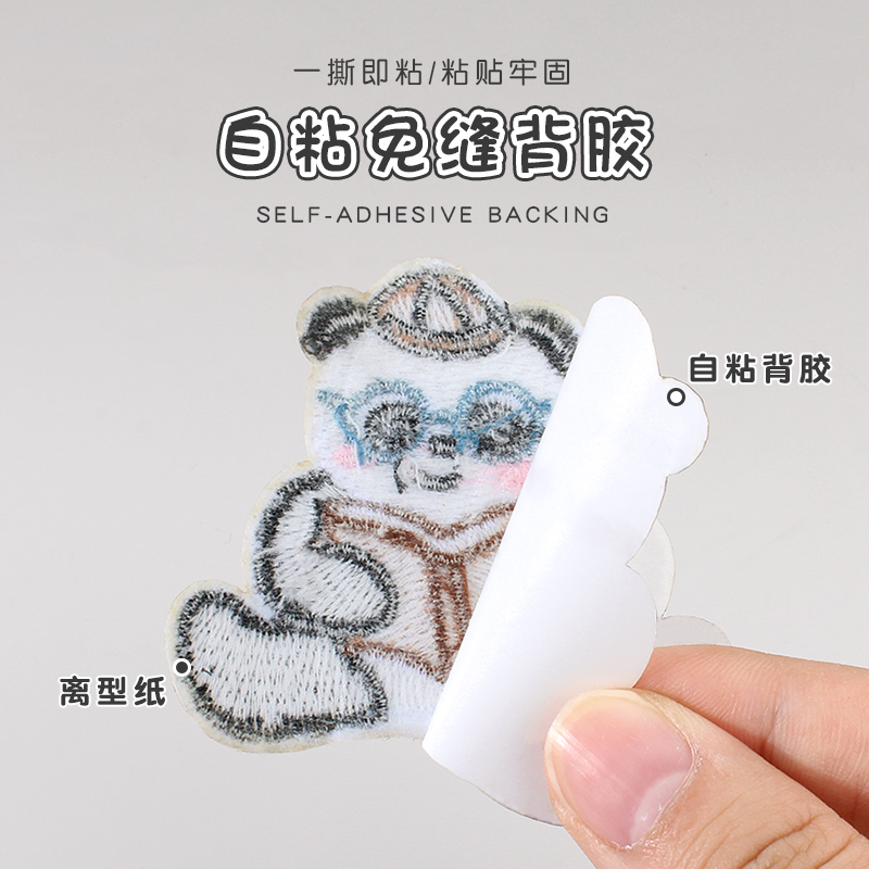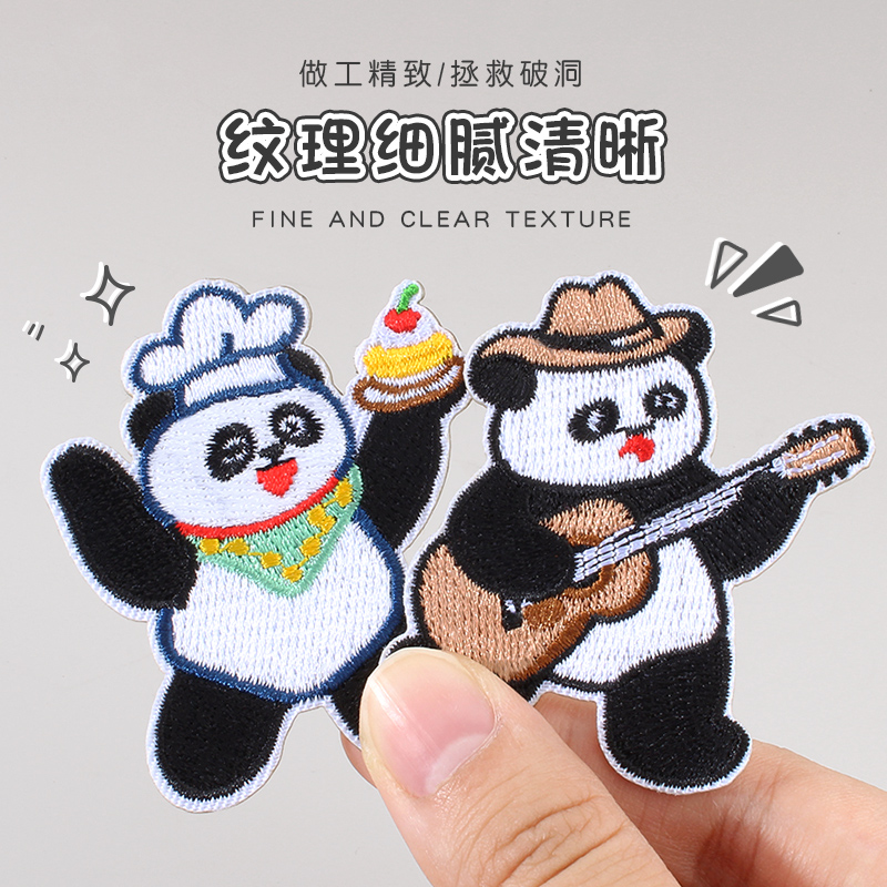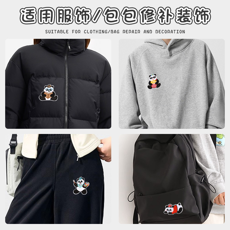 熊猫补丁贴自粘免缝羽绒服衣服裤 子补洞衣贴高端刺绣图案修补布贴