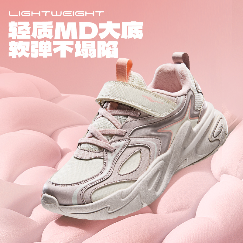 子女童跑步鞋 星耀鸿星尔克儿童鞋 加绒鞋 革面跑鞋 秋冬男童运动鞋