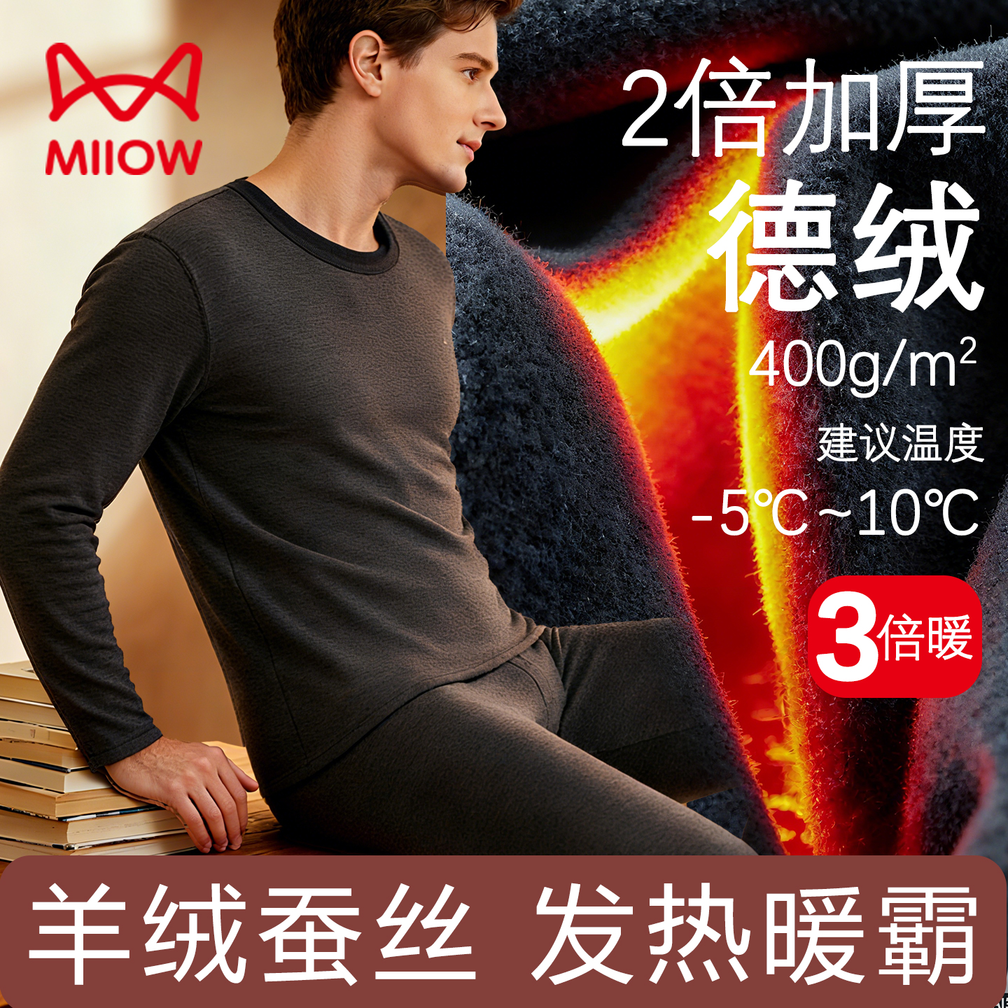 女 内衣羊毛秋衣秋裤 肖战同款 小黑猫猫人倍暖5.0科技打底保暖套装