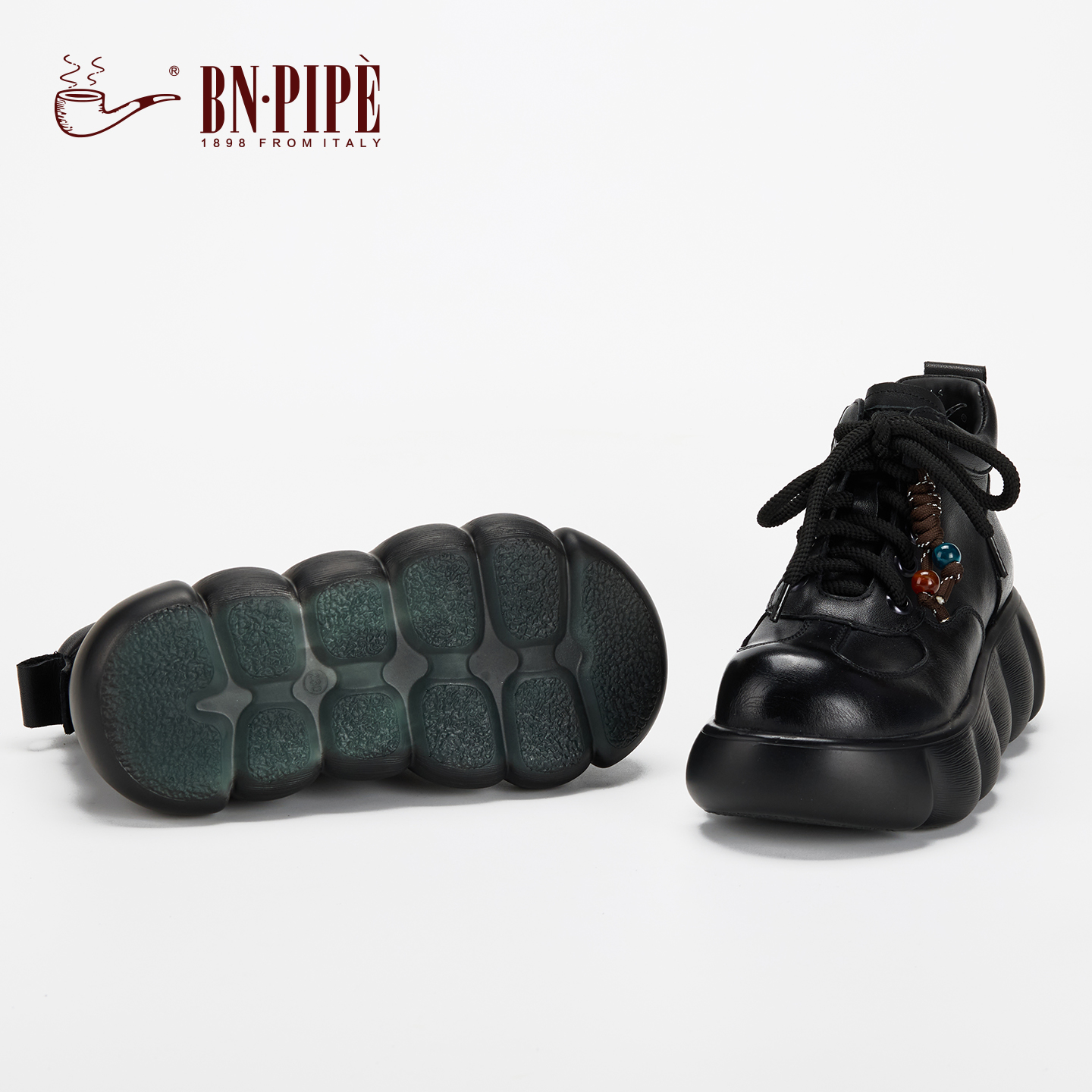 百年烟斗真皮复古马丁靴英伦风黑色舒适丑萌大头女鞋 增高软底短靴