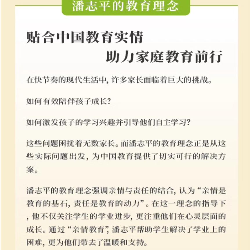 教育在亲情中自然发生 一位智慧校长给家长 家长学校 潘志平 讲座参考书籍 家长会 著 亲子教育 爱孩子就这样做 50封亲笔信