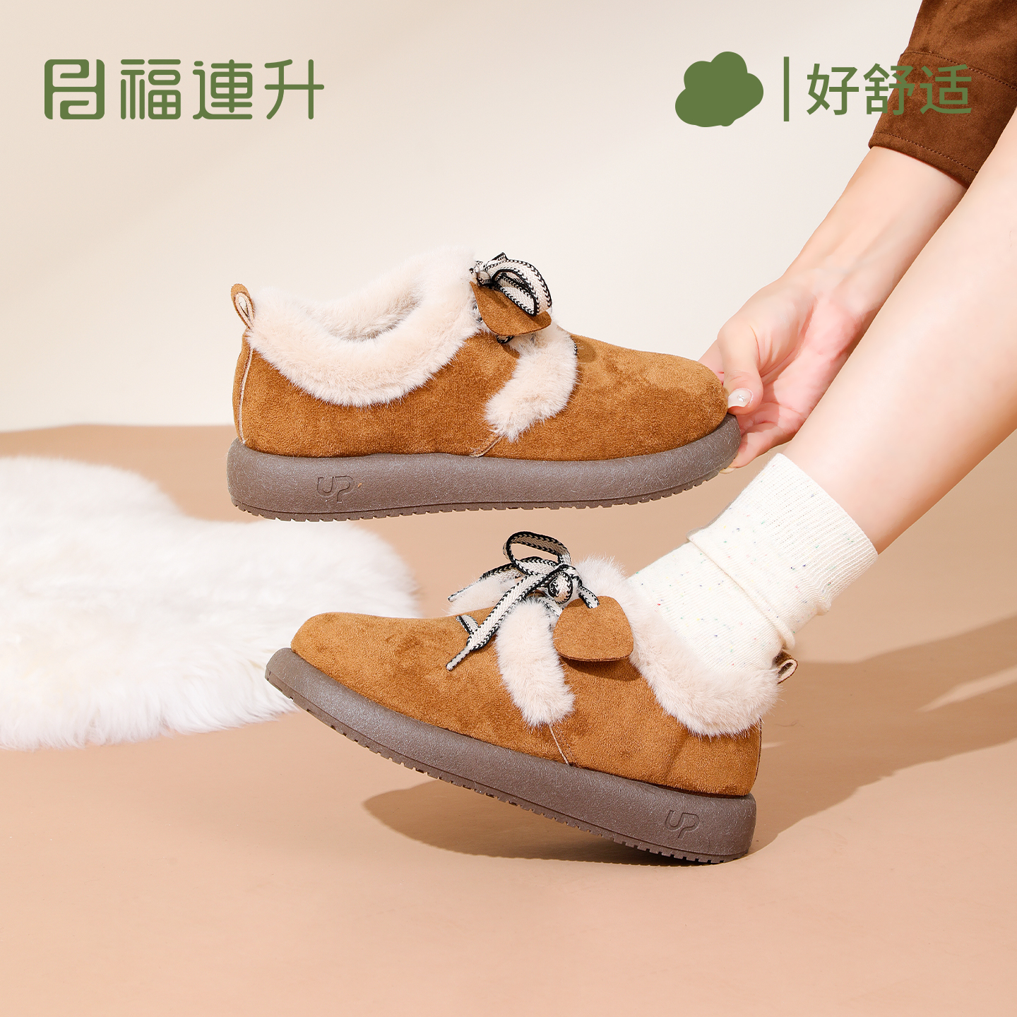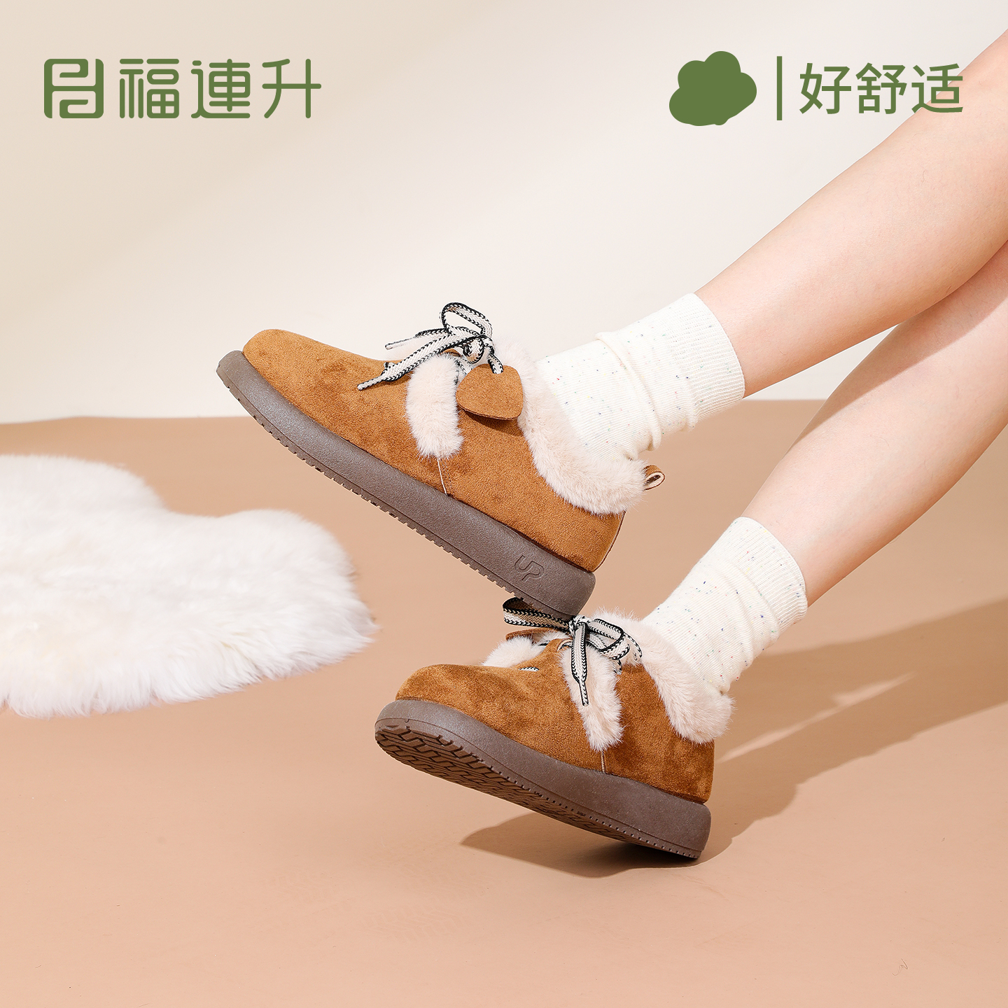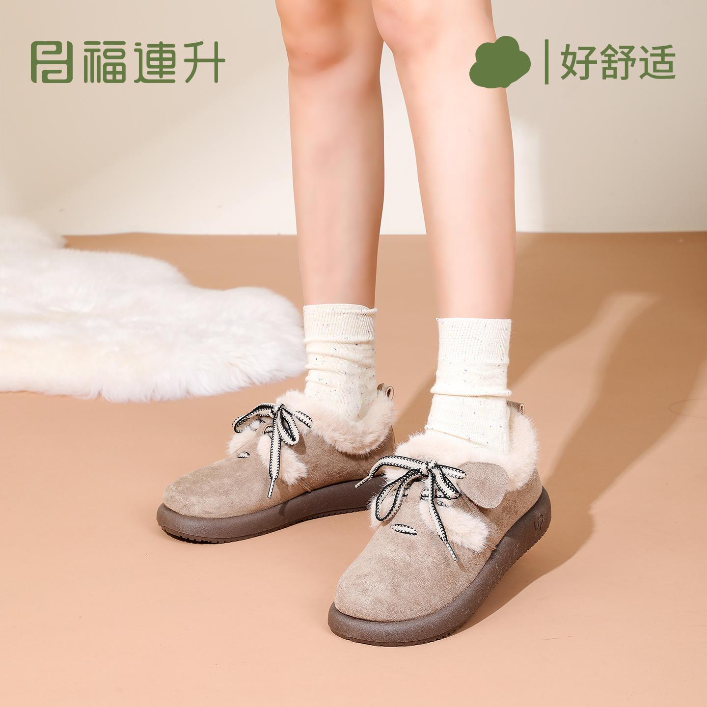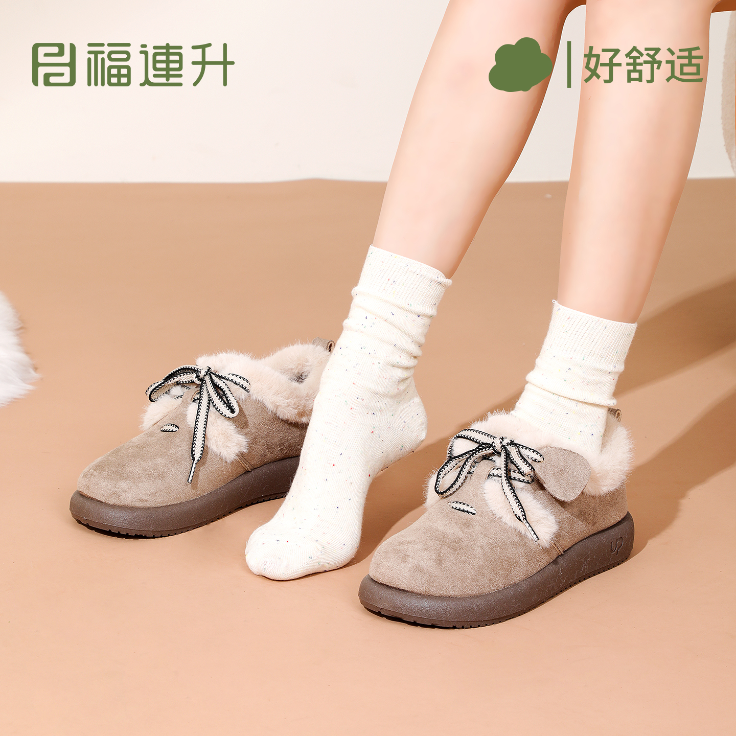 舒适轻便休闲居家防滑雪地靴棉鞋 加绒保暖女鞋 新款 福连升2025冬季