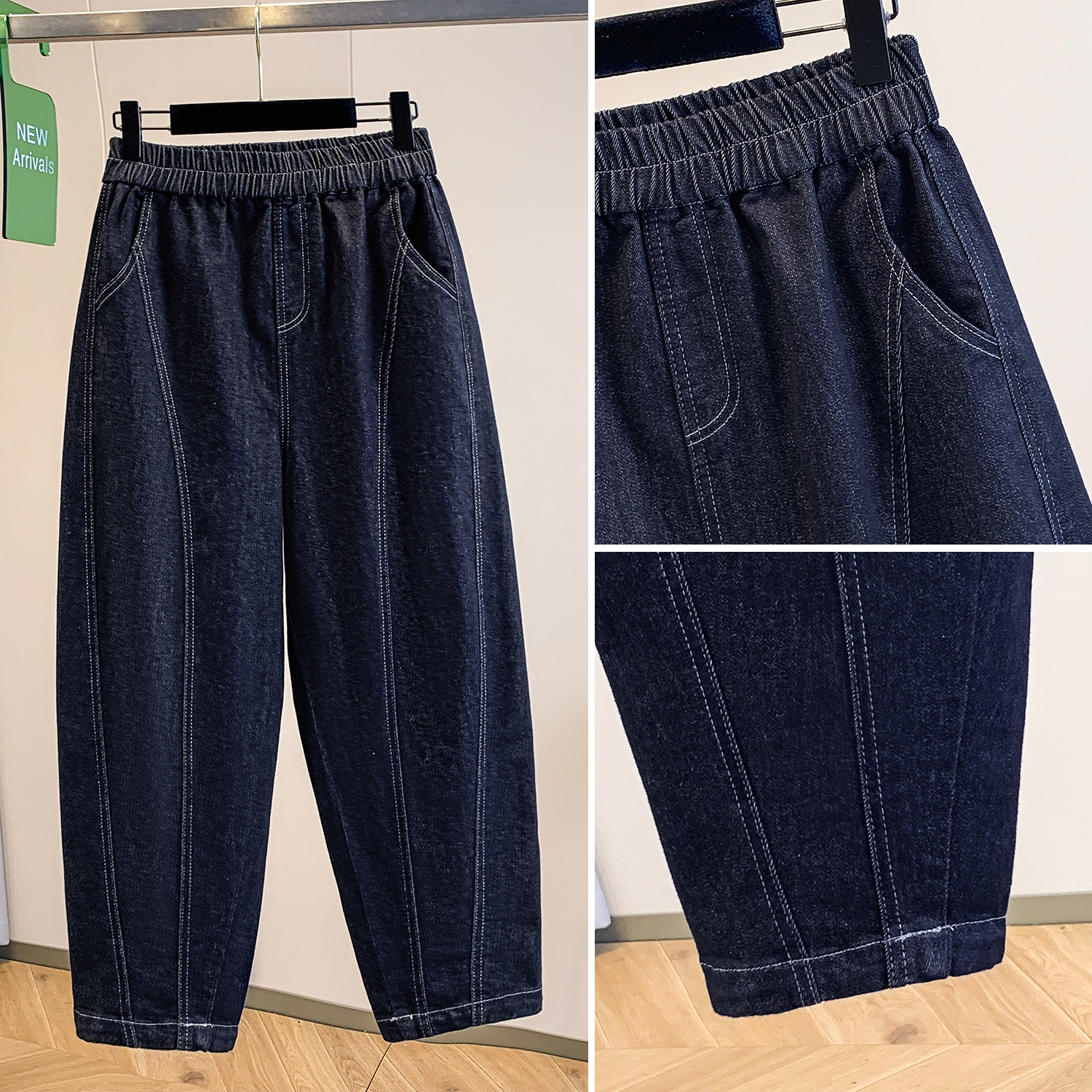女胖mm梨形身材宽松显瘦老爹裤 高级感拼接哈伦牛仔裤 新款 2025秋季