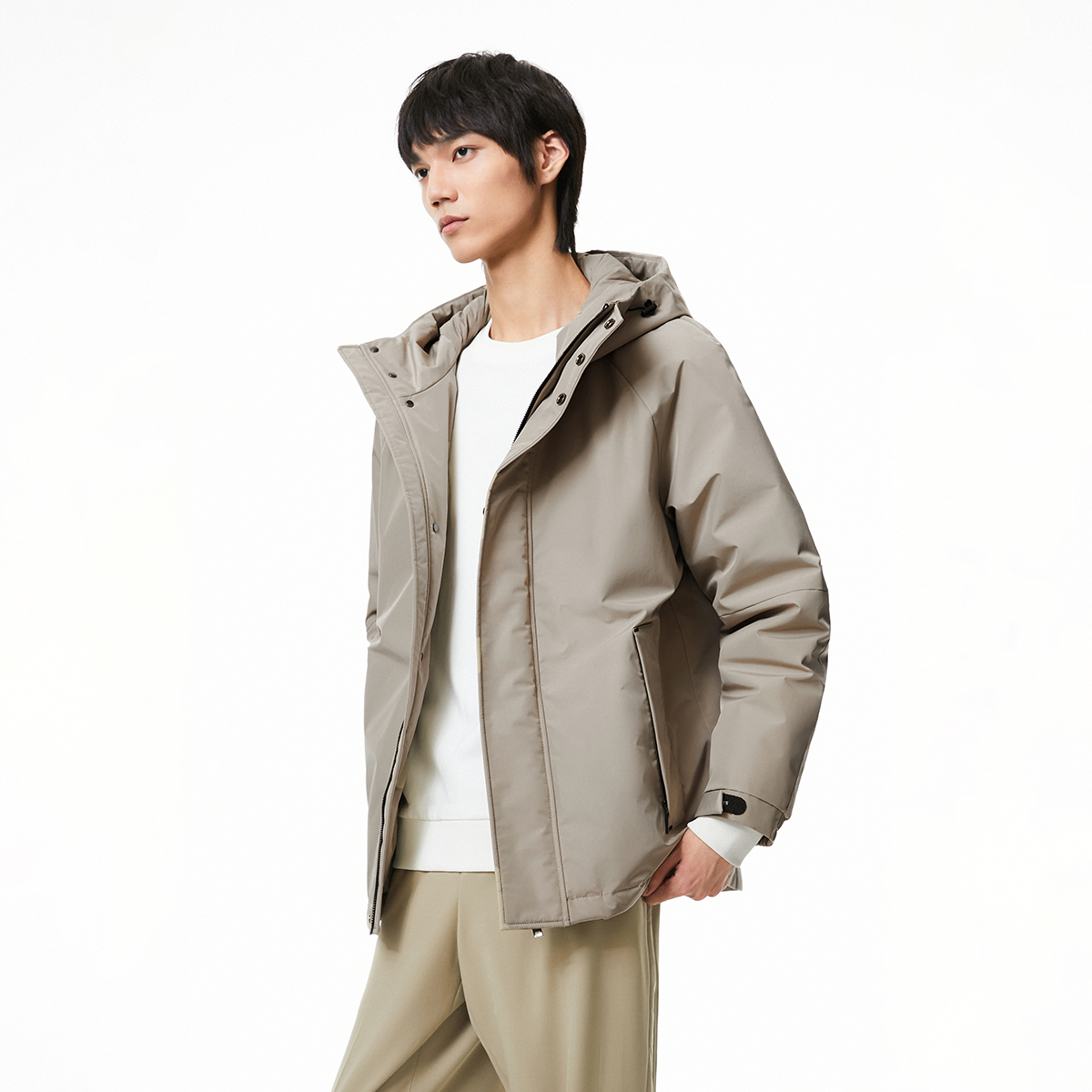 帅气魔术贴拉链防风连帽外套羽绒服外套男装 杰克琼斯冬款 预售