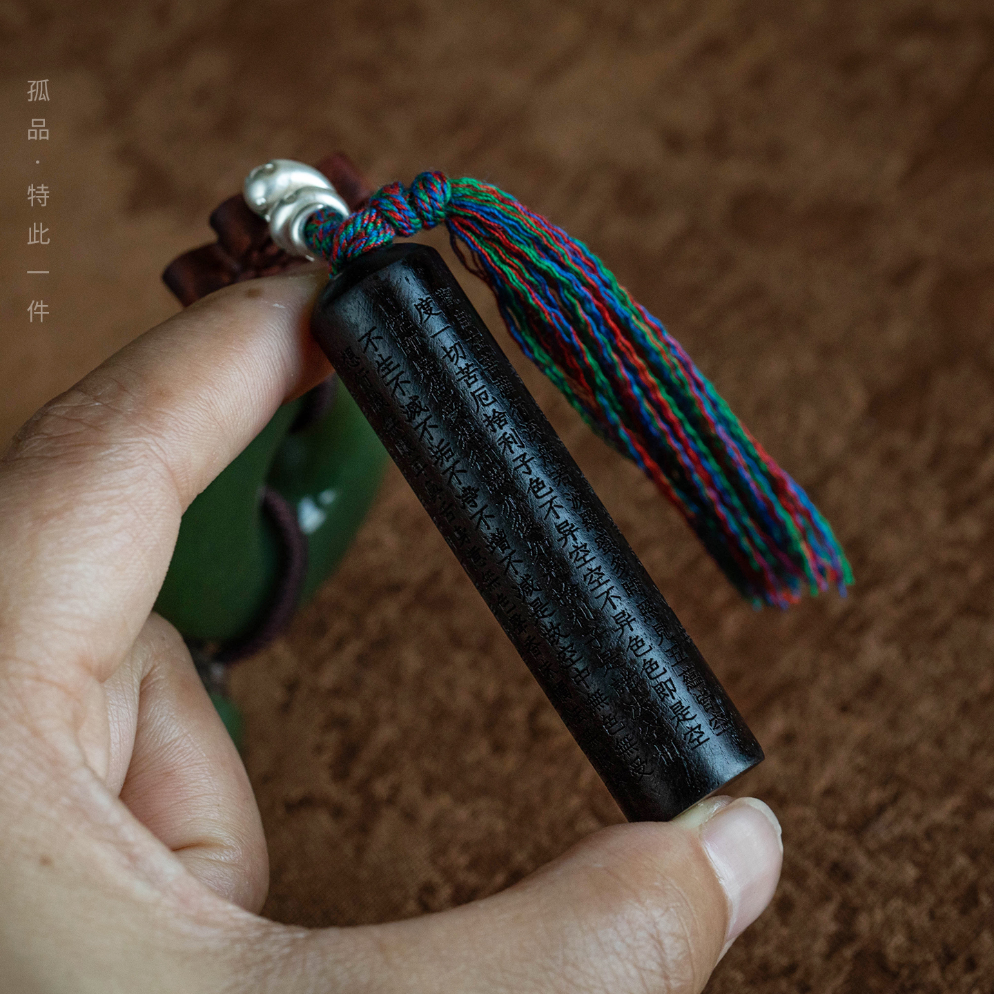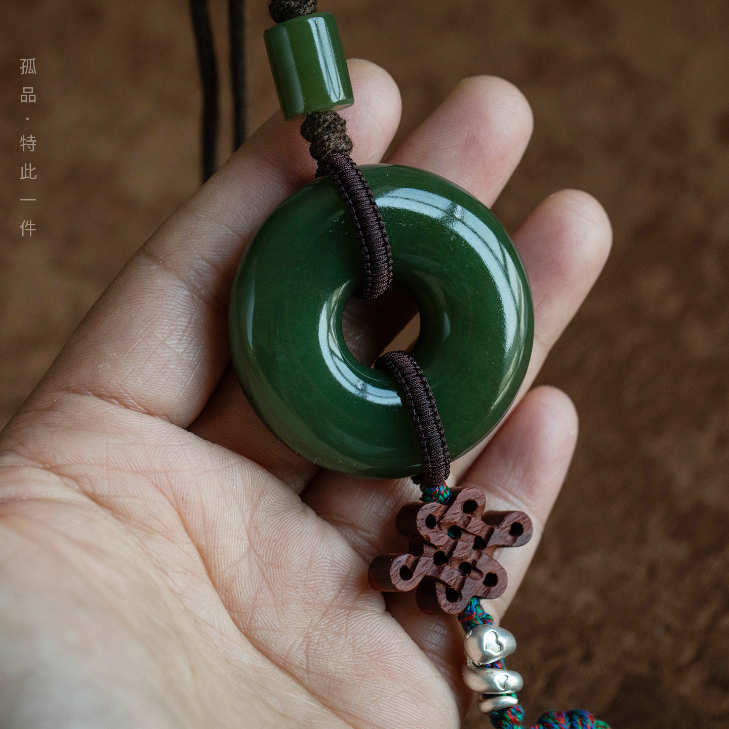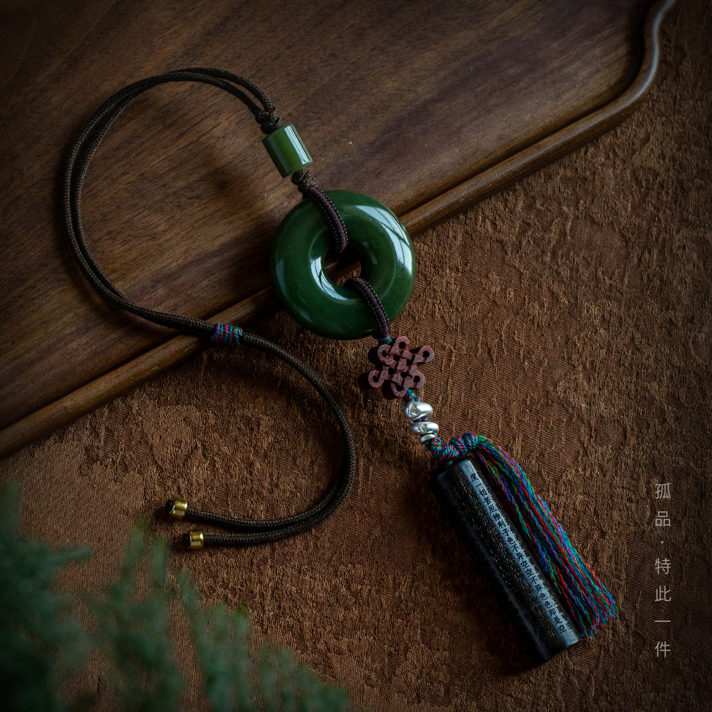 饰 天然和田玉石汽车挂件心经平安牌车内挂饰木质中国结装 孤品