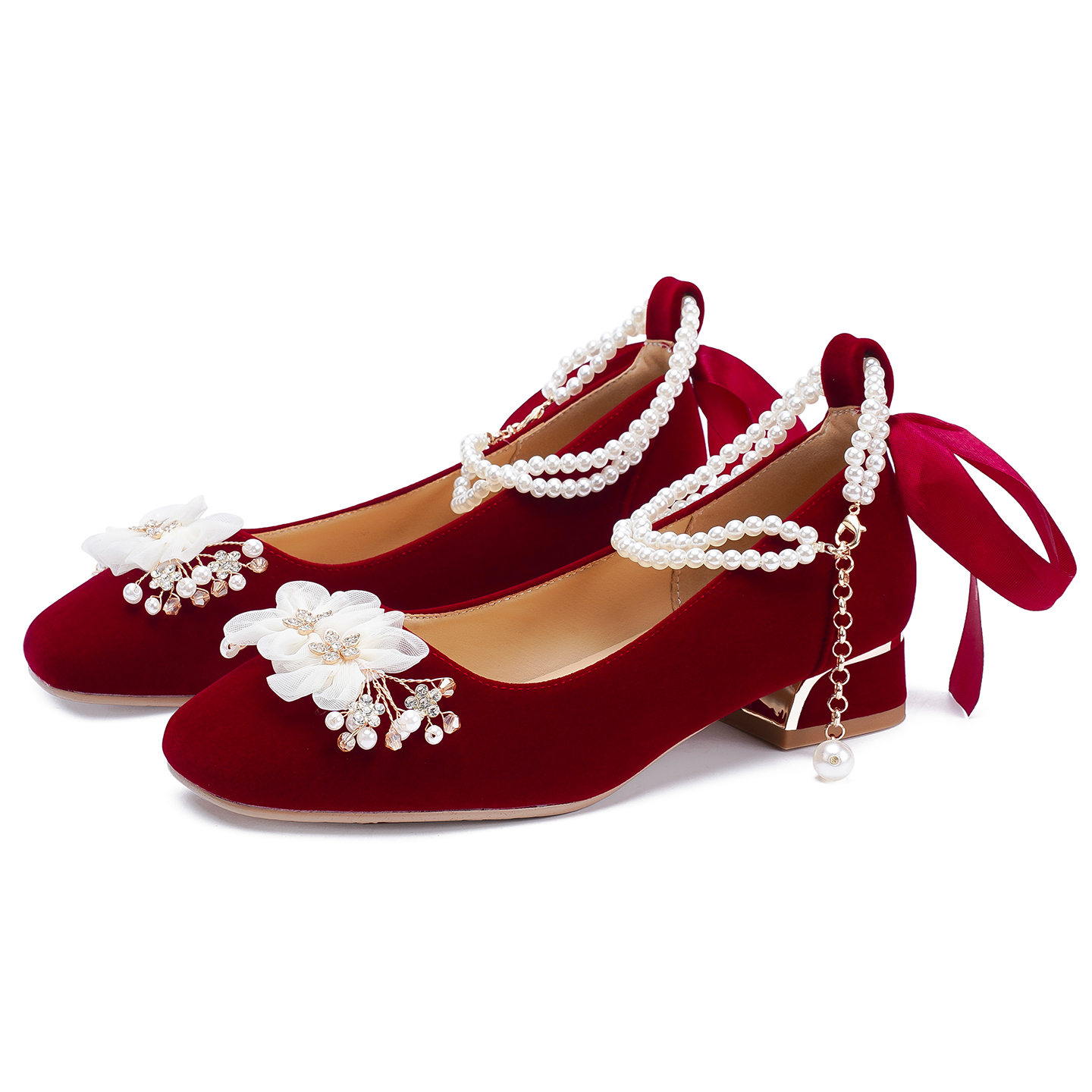 孕妇粗跟不累脚单鞋 红色秀禾服婚纱两穿新娘鞋 女2025新款 平底婚鞋