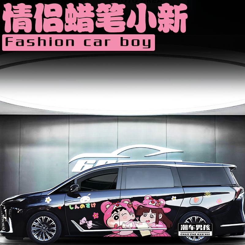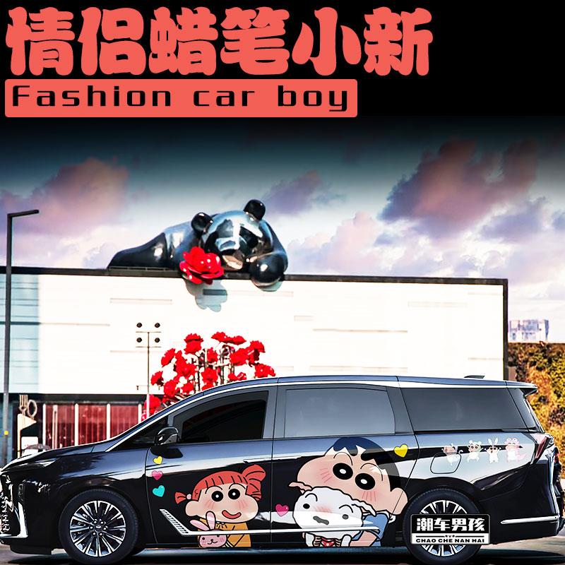 适用别克GL8 创意定制 情侣蜡笔小新车贴卡通汽车车身两侧贴纸个性