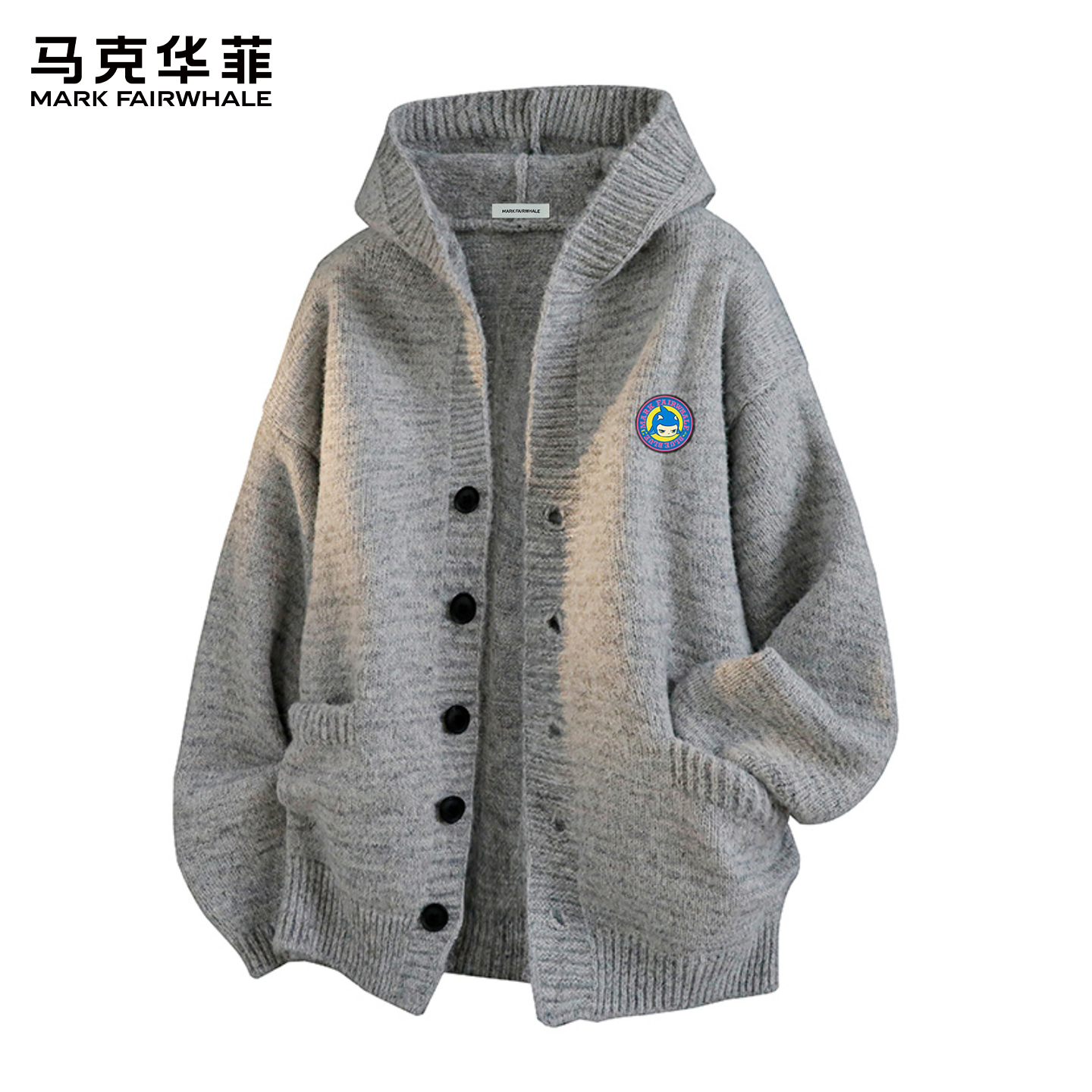 JHYQ美式 复古铆钉拼印花半拉链连帽毛衣外套男秋冬宽松针织卫衣衫