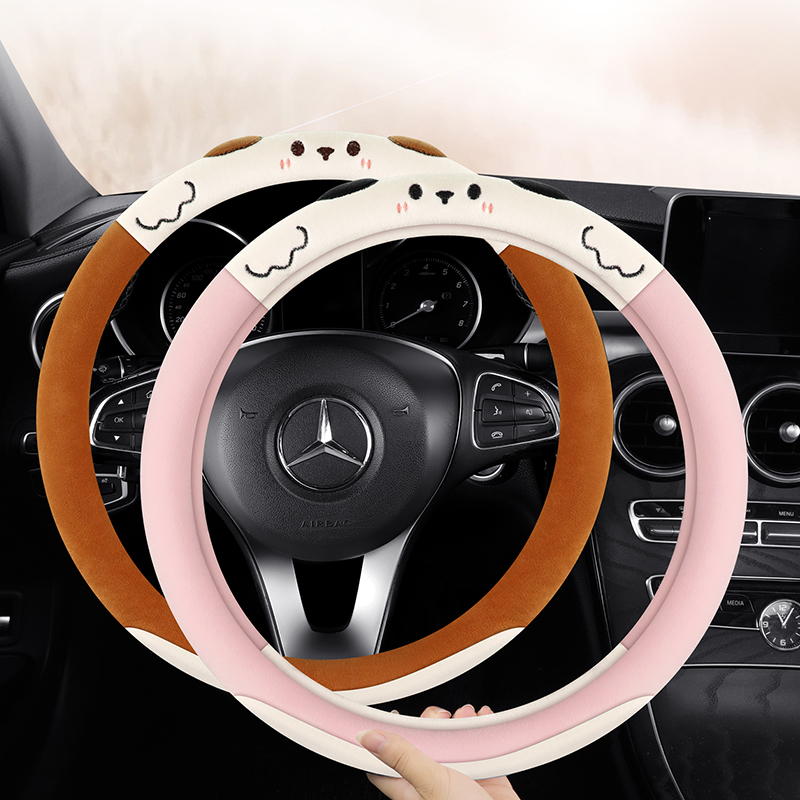 新款 通用女防滑高级吸汗透气四轮车通用型 猫耳朵汽车方向盘套四季