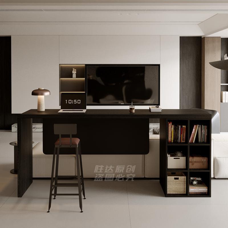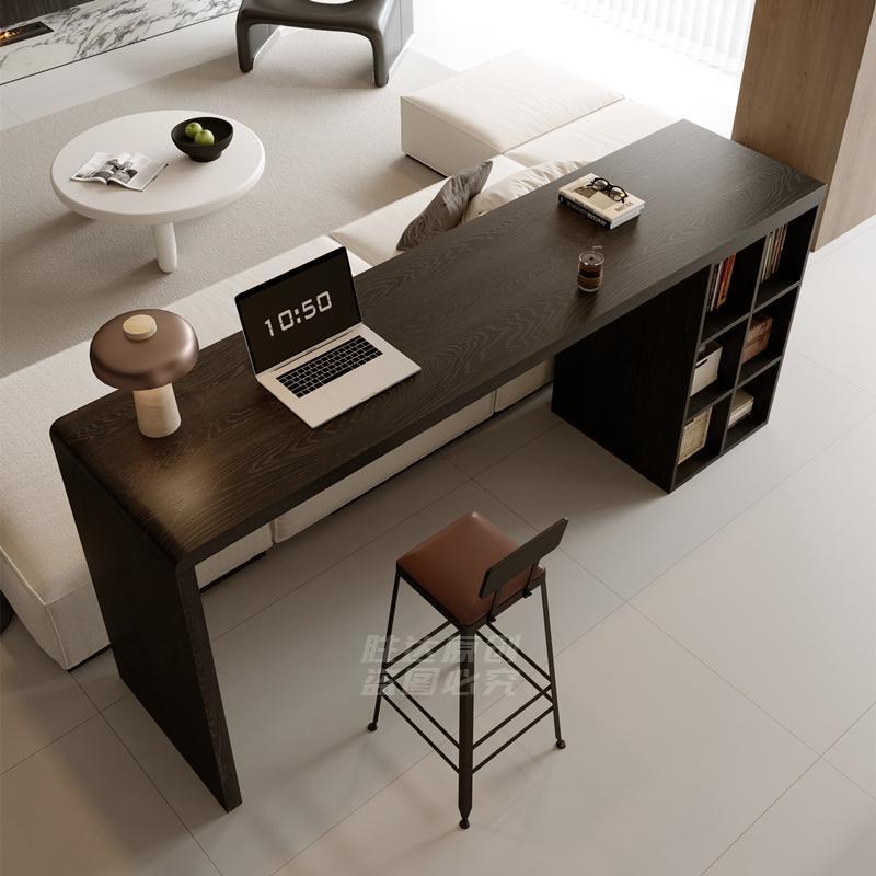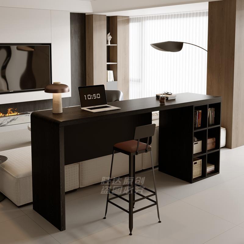 加高实木书桌白蜡木黑色家用吧台桌隔断横厅沙发后长条桌子工作台