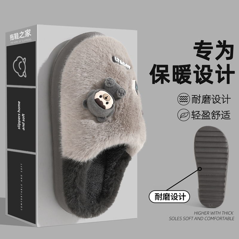室内居家厚底防滑保暖亲子棉拖鞋 秋冬2025新款 女 男士 踩屎感棉拖鞋
