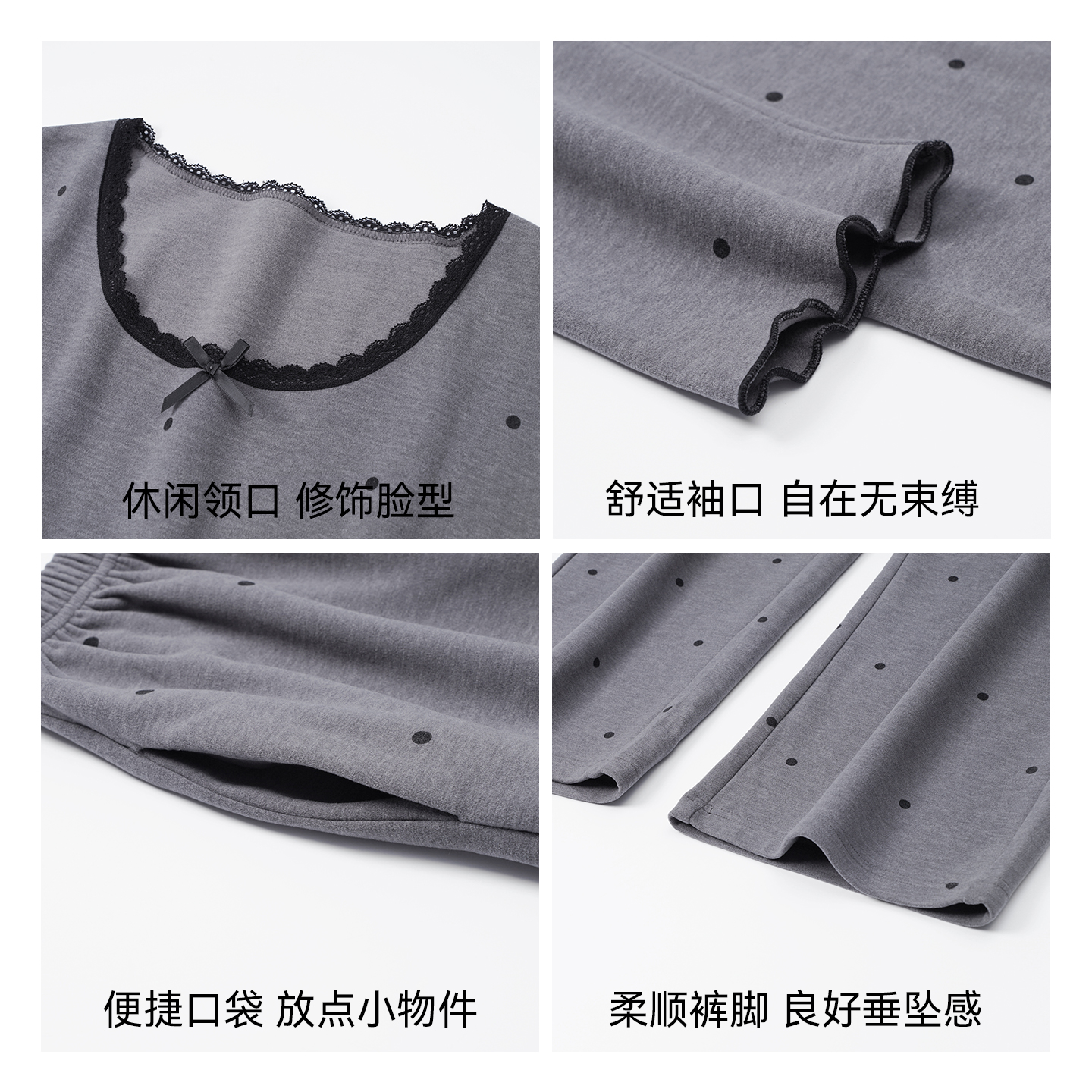 2025新款 加厚长袖 灰色波点高级家居服 款 南极人德绒保暖睡衣女冬季