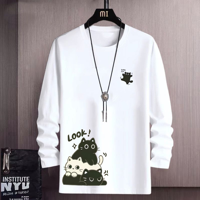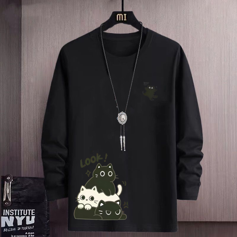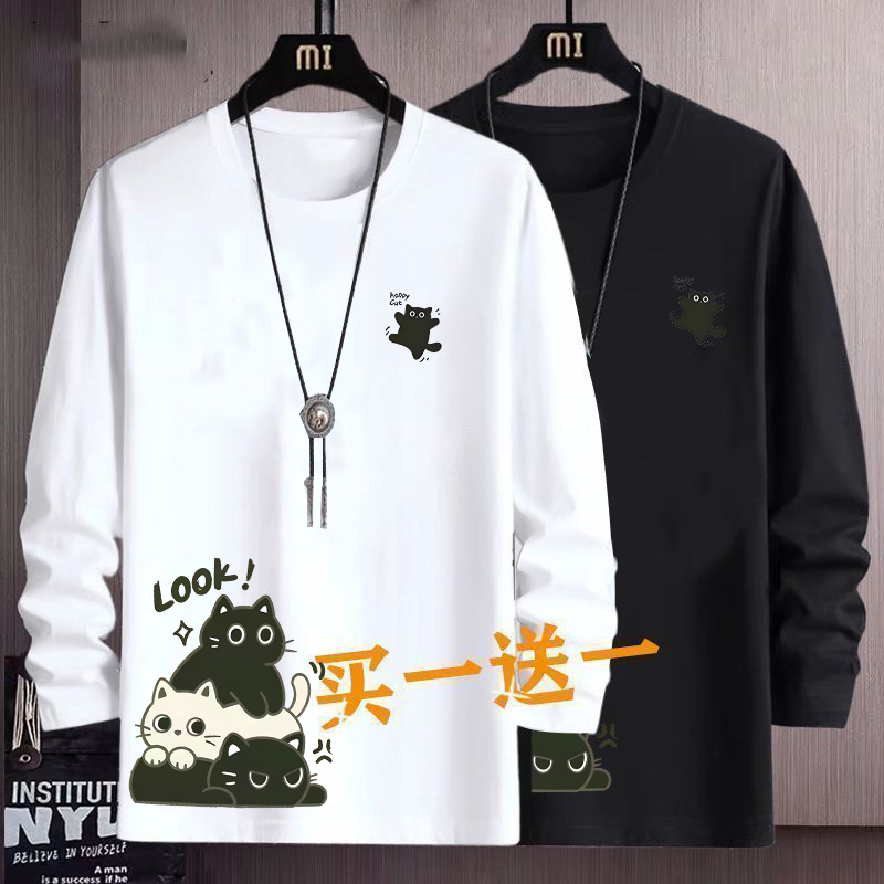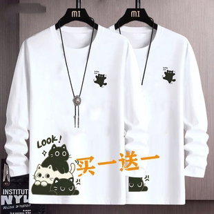 打底衫 t恤潮流情侣印花大码 圆领宽松ins上衣服百搭潮 纯棉长袖 男士