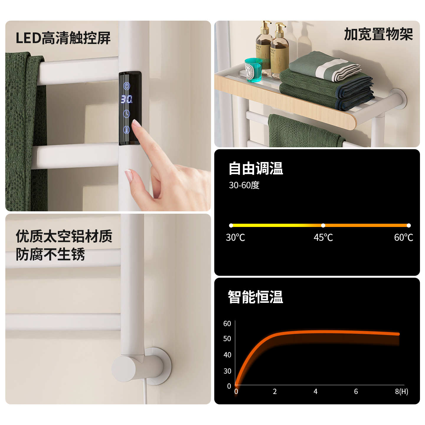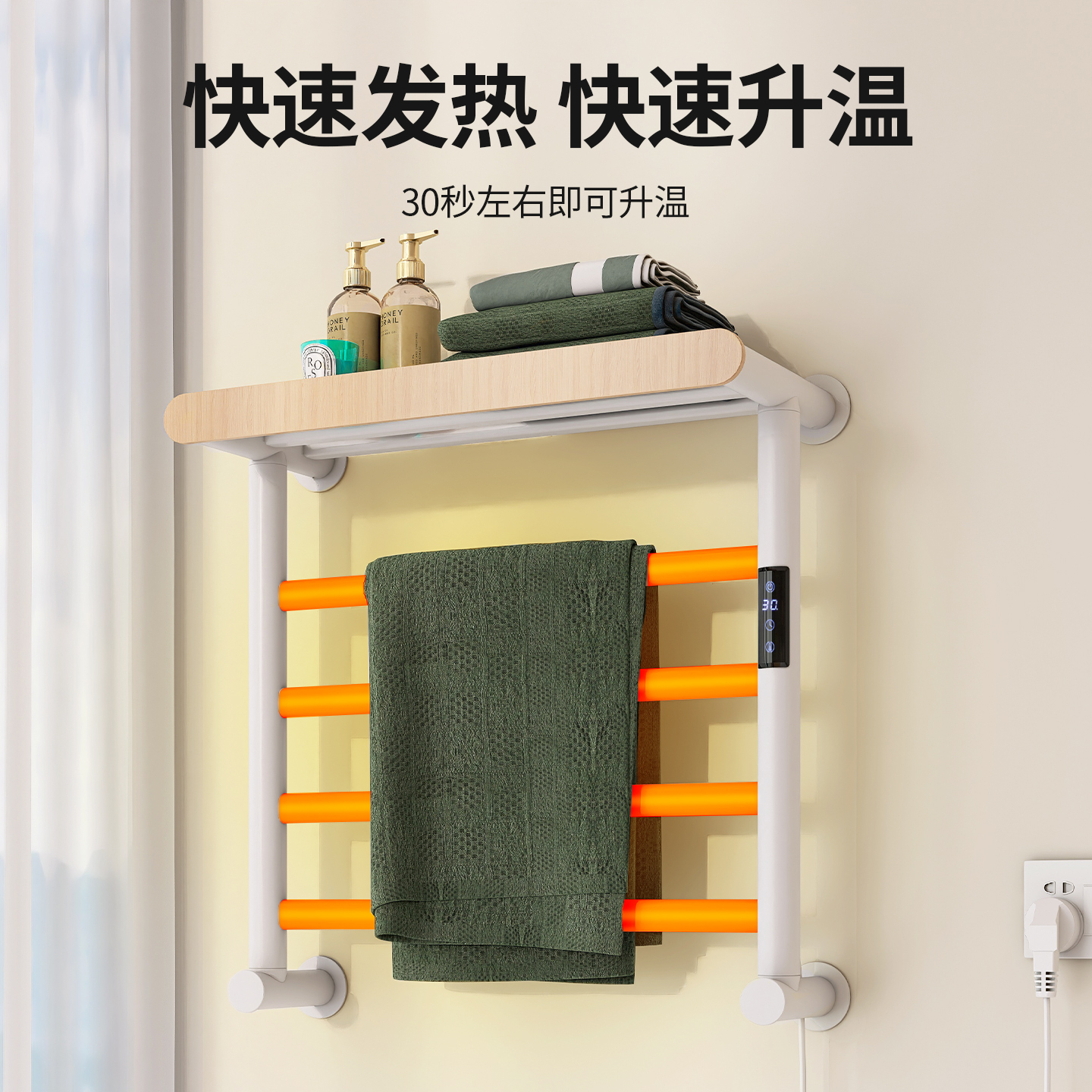 智能电热毛巾架家用碳纤维加热烘干定时恒温卫生间免打孔浴巾架
