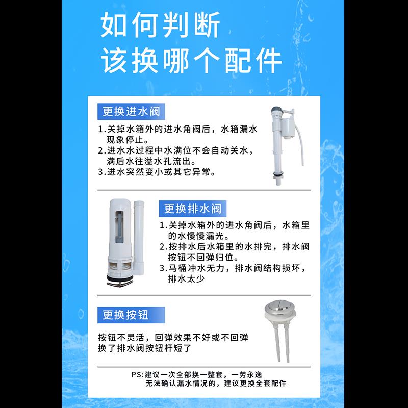 普通马桶配件水箱进水阀排水阀通用坐便器按钮双按冲水器多种款 式