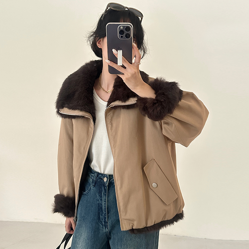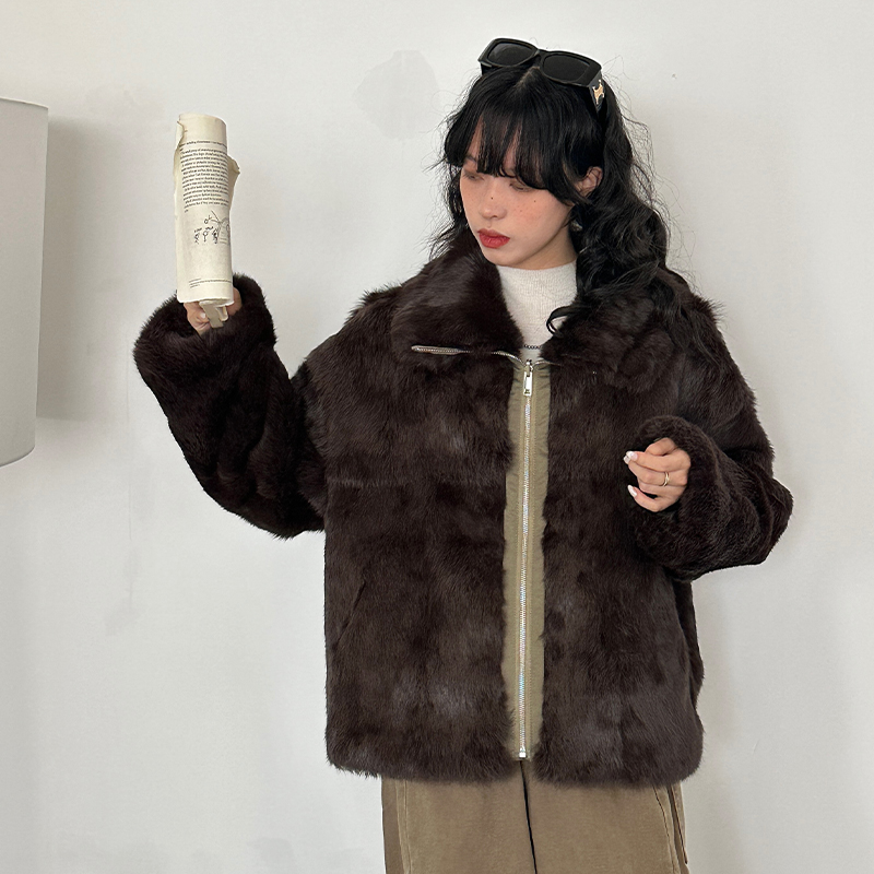 真獭兔毛皮草大衣女2025冬新款 两面穿一体派克服外套 宽松保暖时尚