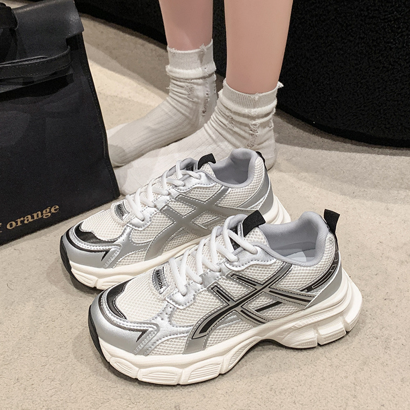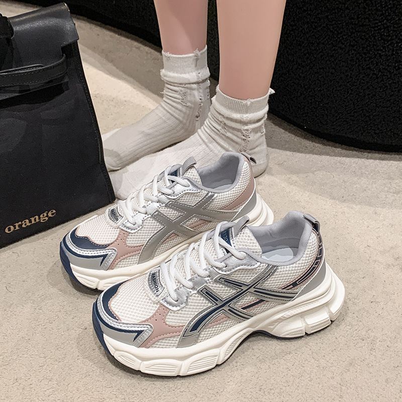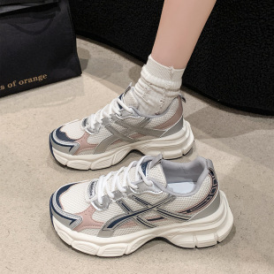 春秋季 女2025新款 透气网面学生跑步炸街轻便休 厚底老爹鞋 品牌断码