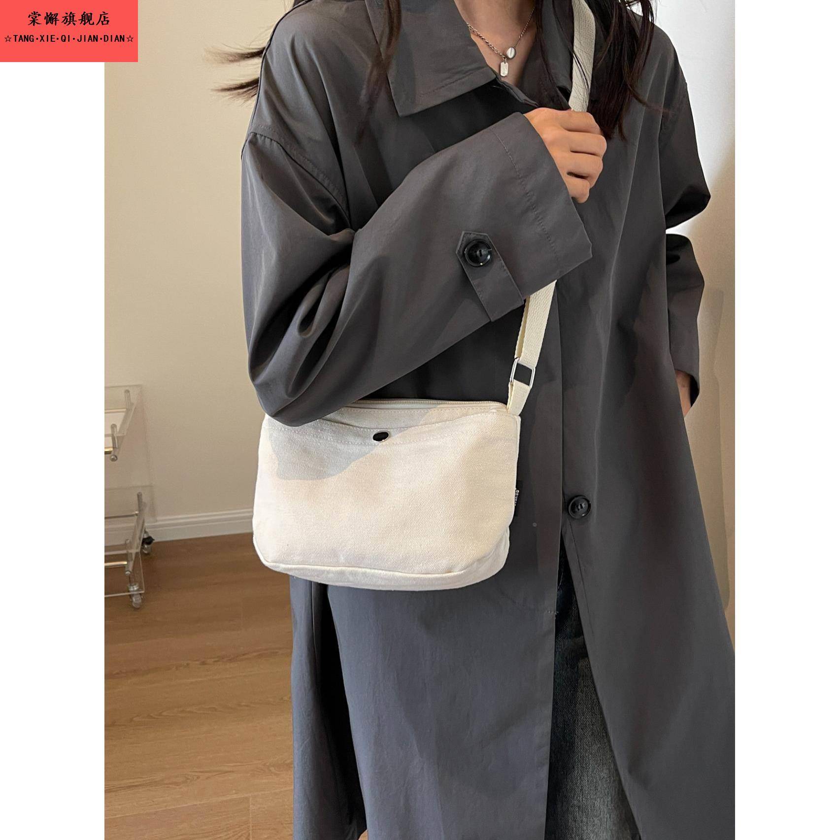 2025新款 单肩小布包女大学生逛街出行休闲帆布斜挎包 欧美简约时尚