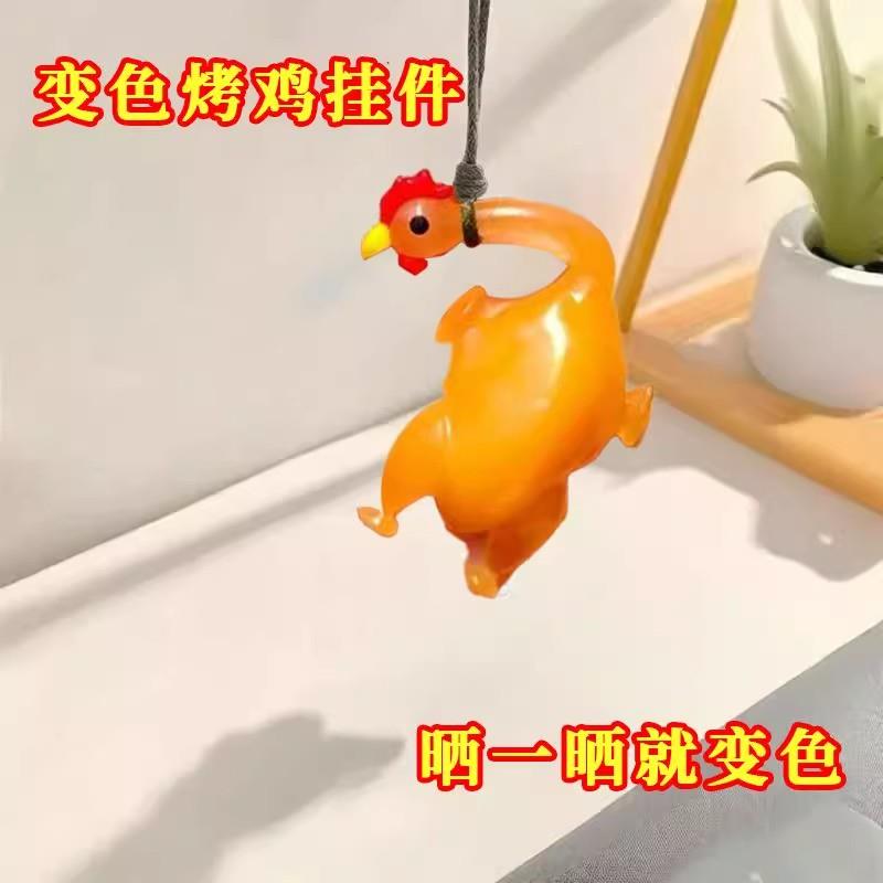 网红变色烤鸡烤鸭挂件遇光紫外线会变色防晒鸭创意钥匙扣汽车挂件