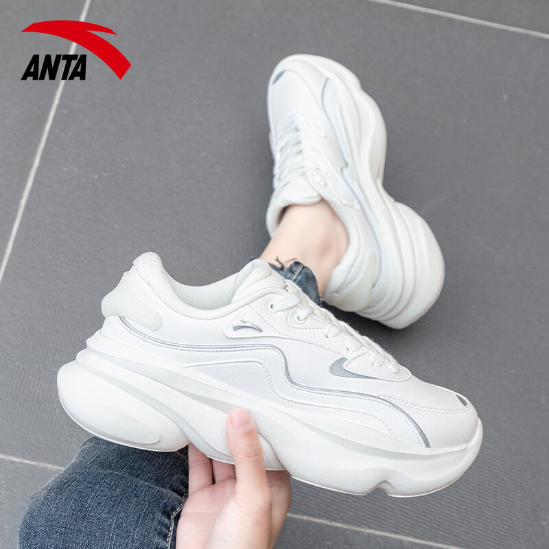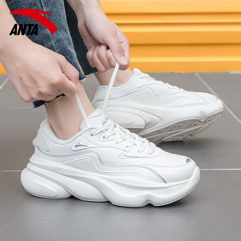 女鞋 秋季 舒适厚底增高小白鞋 安踏元 百搭运动鞋 板鞋 轻便休闲鞋 年