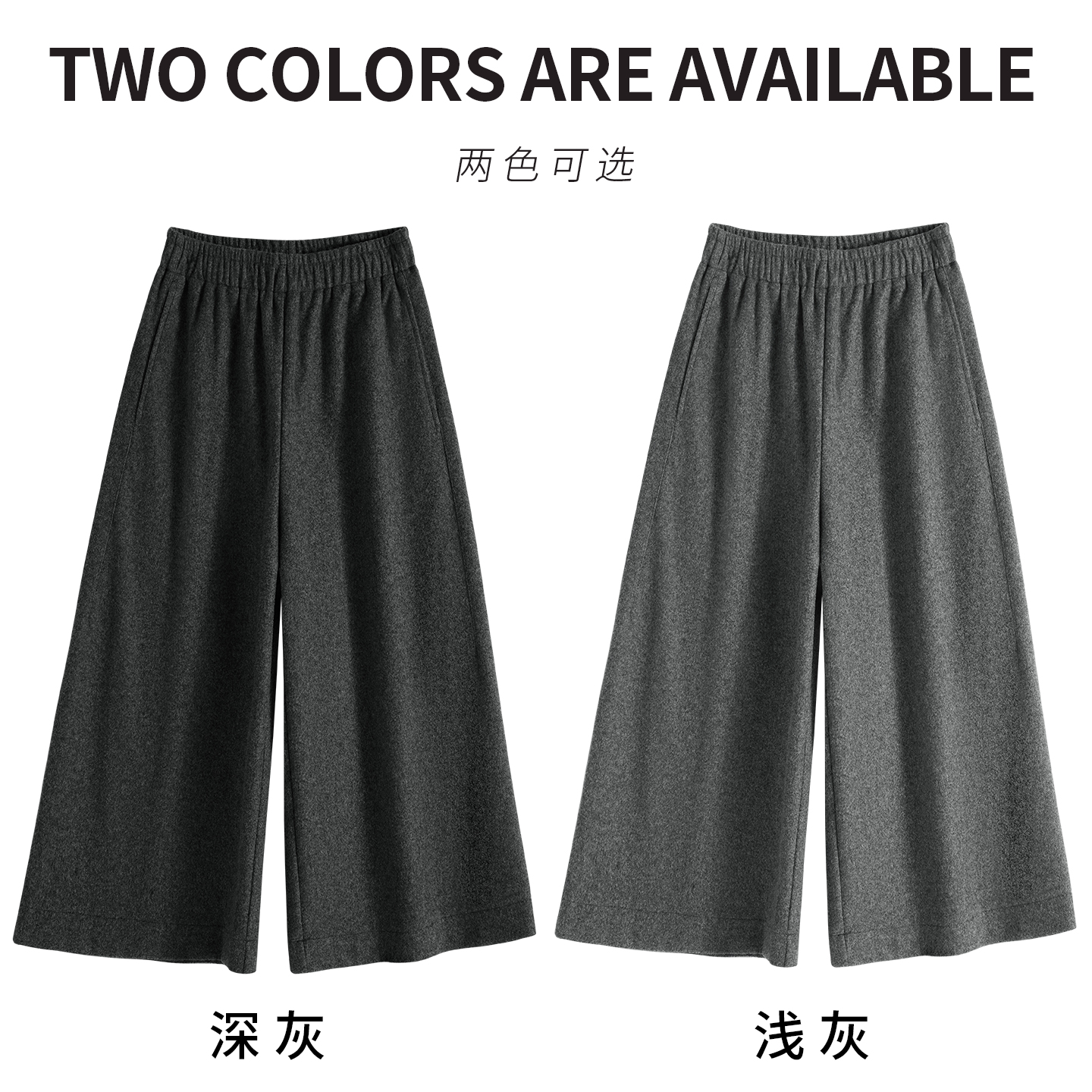 羊毛七分休闲运动裤 毛呢八分裤 2025新款 高腰加厚阔腿裤 子 女秋冬季