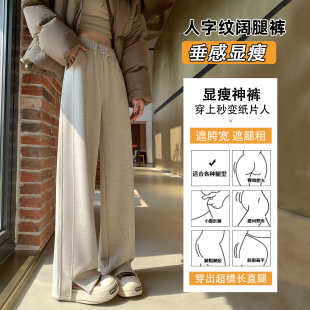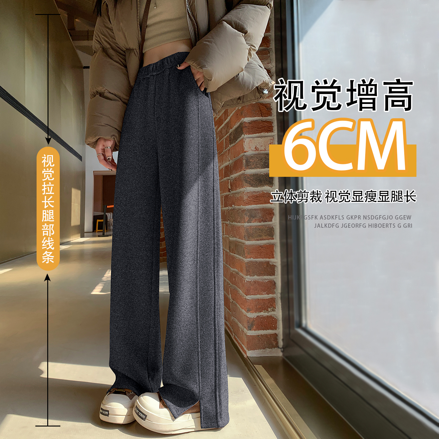 休闲毛呢卫裤 春秋垂感显瘦冬加绒运动裤 外穿 女2025新款 羊毛阔腿裤