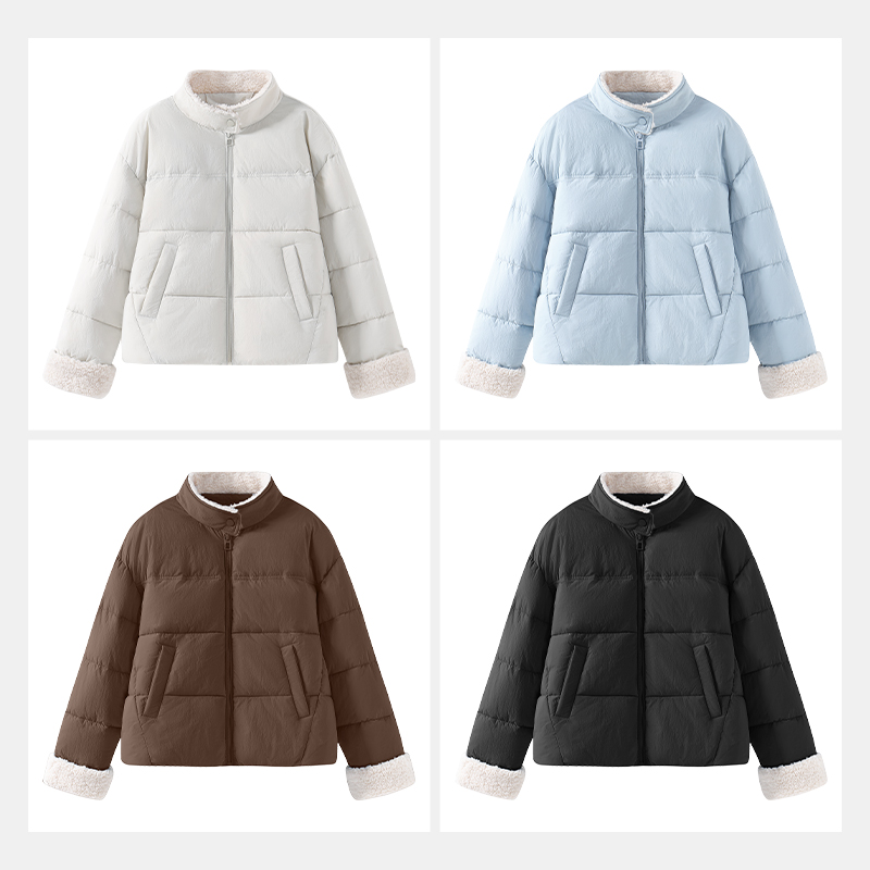 森马棉服女冬毛绒翻领手套宽松分割肌理2025新款 复古休闲棉衣 时尚
