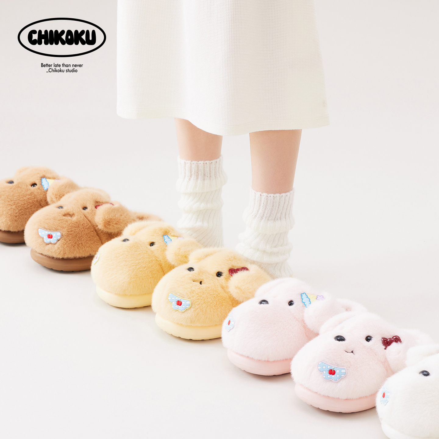 情侣居家室内棉拖 加绒保暖月子鞋 chikoku可爱小狗棉拖鞋 女冬新款