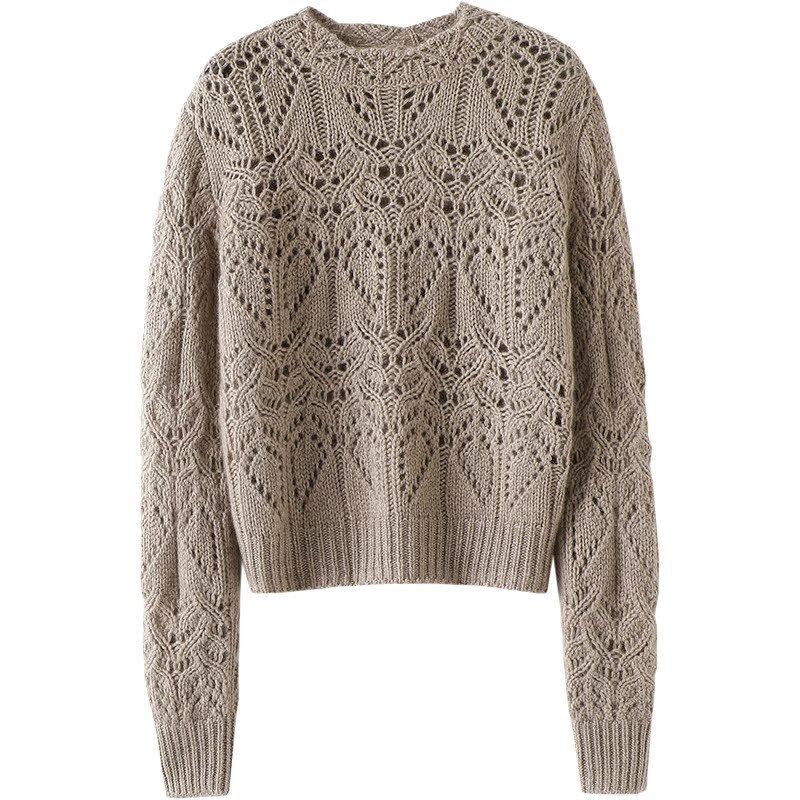 女士羊绒衫 春竹100%山羊绒季 针织衫 宽松气质无缝圆领套衫 新款