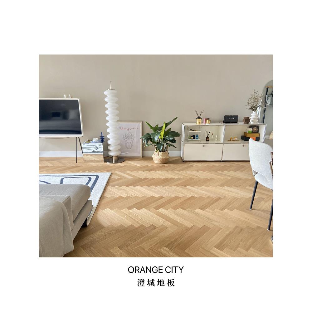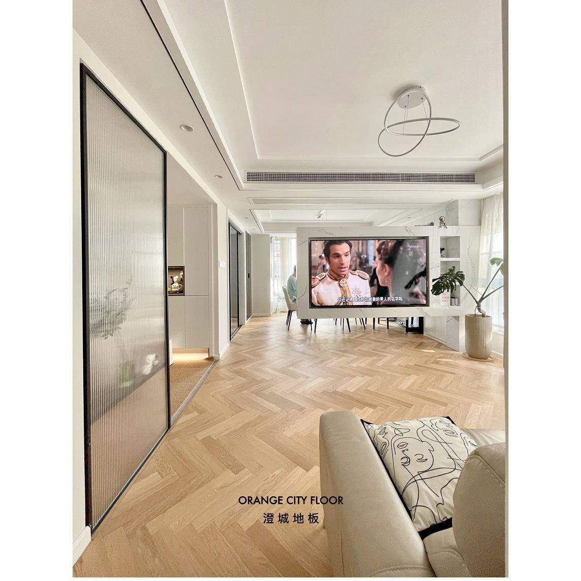 乾橙橡木鱼骨拼人字拼地板实木多层复合白色浅灰色轻奢风地暖可用