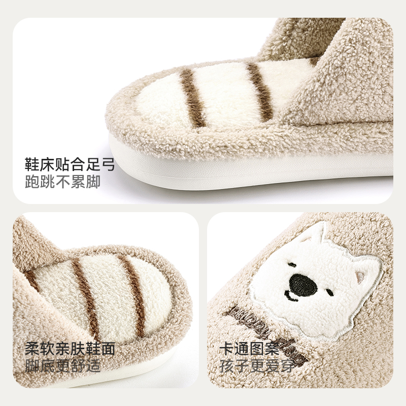 幸福玛丽儿童棉拖鞋 秋冬亲子居家保暖中大童室内地板男童女童拖鞋